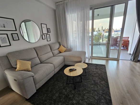 Contemporary 87 sq.m. apartment, built in 2021, on the 2nd floor with covered parking and a storage room. Perfectly located just 1 minute from the General Hospital, 2 minutes from Metropolis Mall, and close to schools, kindergartens, and supermarkets. Enjoy easy access to Limassol and Nicosia highways. Title deed available. A perfect blend of style and convenience—schedule your viewing today!