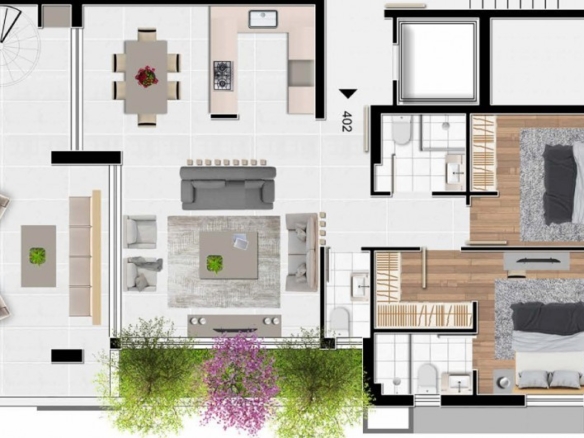 A sleek design across 4 floors with 10 apartments, with 1, 2, and 3-bedroom apartments available. Each apartment blends style and functionality. Plus, enjoy hassle-free parking for your vehicles, ensuring both security and convenience. Welcome to modern living at its best. This unit has a terrace area of 50 square meters. Delivery-April 2026