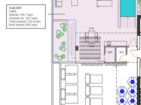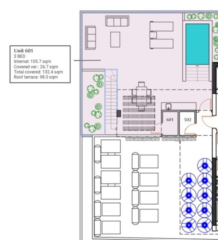 A collection of 18 contemporary one-, two- and three-bedroom apartments perfectly designed for modern city living. Located in a prime location, with easy access to shopping, dining, and entertainment, this is the perfect place to call home for those seeking the ultimate in quality and convenience. This unit has a roof terrace of 98 square meters with a private swimming pool. Delivery-December 2026