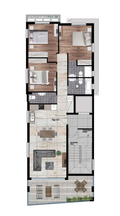 This project is located in one of the most elite and prestigious areas in Larnaca! The project will be composed of 3-bedroom apartments and a penthouse with a large roof terrace! Located at just few minutes from the famous Finikoudes beach and being close to public amenities, restaurants and malls, the project will offer its residents the best living experience! This is a whole floor apartment. Delivery-July 2025