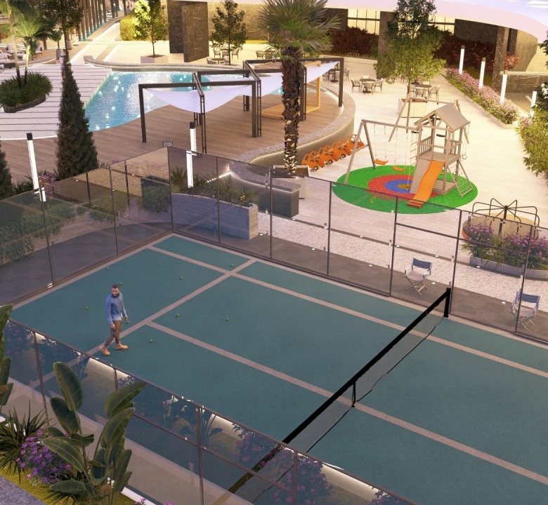 This project, located in Livadia, features a modern residential development with 99 apartments. The complex boasts a range of high-end amenities, including mosquito nets in all aluminum profiles, a large common swimming pool, private pools for select apartments, and a luxurious lobby. Residents can enjoy an open kids’ playground, gym, and padel court, as well as smart home systems and electrical underfloor heating for added comfort. The project is designed to offer a blend of functionality and luxury, with spacious living areas.