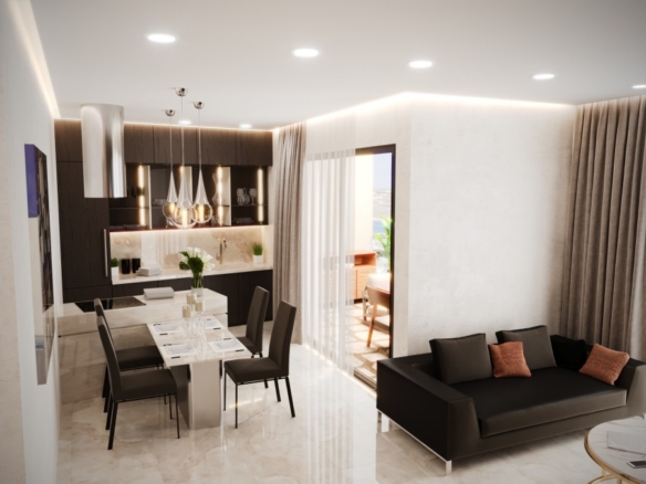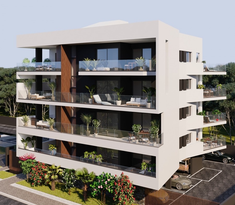 A harmonious blend of modern luxury and ancient inspiration, stands proudly in the heart of Larnaca, Cyprus. The compound seamlessly merges comfort, elegance, and tranquility. Offering a selection of 1, 2 and 3-bedroom apartments, each a testament to modern living. Adding to the allure, every residence comes with its dedicated parking space, ensuring both convenience and security for residents, as well as storage rooms for every unit. The commitment to individual comfort and well-being extends beyond the private quarters into the shared spaces that foster a sense of community. As residents step into the exterior communal areas, they are greeted by a crystalline swimming pool, a recreational lounging area which offers a space for residents to unwind and socialize, and a children’s playground, thoughtfully designed and equipped, ensures that every member of the family finds joy and entertainment within the compound. Standing as a testament to the fusion of ancient inspiration and contemporary living, offering a unique and enriching experience for those who call it home. Delivery-July 2026
