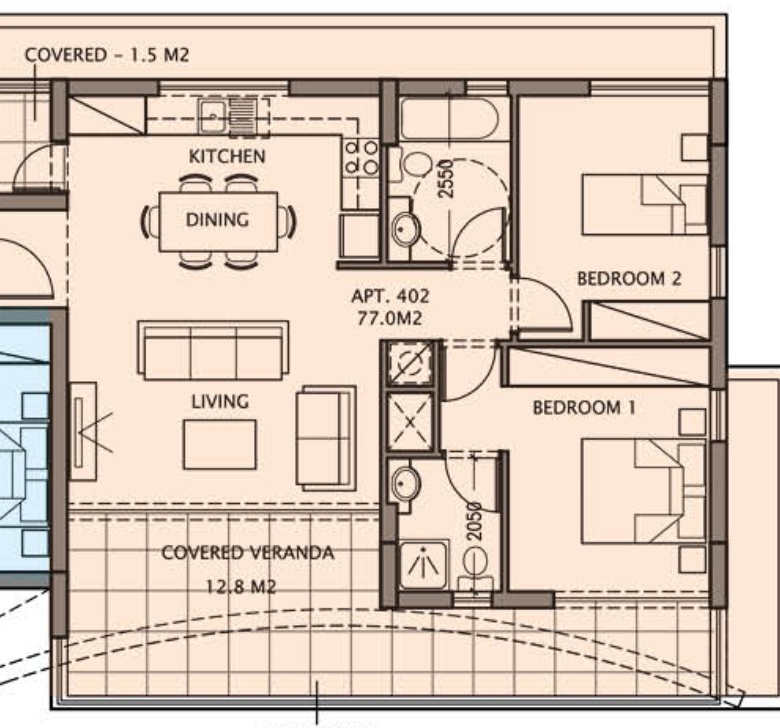 This project is coming soon to the fastest developing area in Larnaca: The New Marina area! The project will consist of 2 separate buildings composed of 1 & 2 bedroom apartments and is strategically located at 1400 meters from the New Marina & port! This unit has a roof garden of 38.2 square meters.