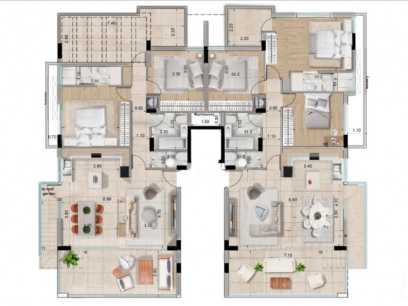 This modern 3-bedroom, 3-bathroom apartment combines style, functionality, and sustainability, boasting an Energy Efficiency A certification. It features a video intercom system for enhanced security, double-glazing thermal aluminum windows and doors for optimal insulation and noise reduction, and large covered verandas for outdoor enjoyment. The layout includes an en-suite bathroom for the primary bedroom, a common bathroom, and a guest toilet, complemented by a concealed laundry station and a convenient linen closet. Additional perks include covered parking and a dedicated storage room, ensuring practicality and comfort. Located in a quiet residential neighborhood, the apartment offers walking distance to Larnaca Metropolis Mall, supermarkets, bakeries, gyms, and hospitals, with easy access to major highways and a nearby park for leisure.