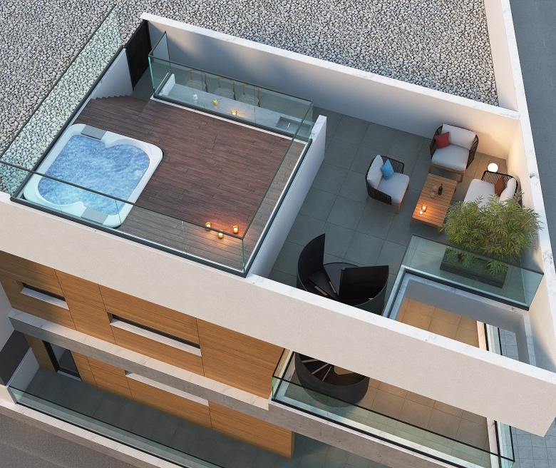 This project is located in the Kato Polemidia area, in Limassol, near the Limassol Mall. It consists of 12 (11 of 1-bedroom and 1 of 2-bedroom) luxurious modern apartments, each with covered parking. The small size of the building gives the resident a unique feeling of exclusivity and security.This unit has a roof garden of 41 square meters.Delivery – June 2026.