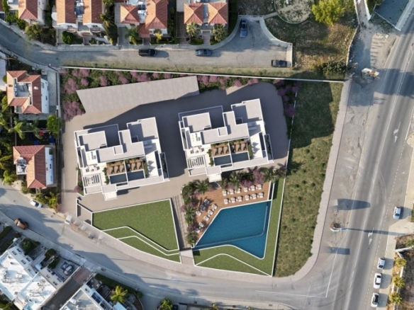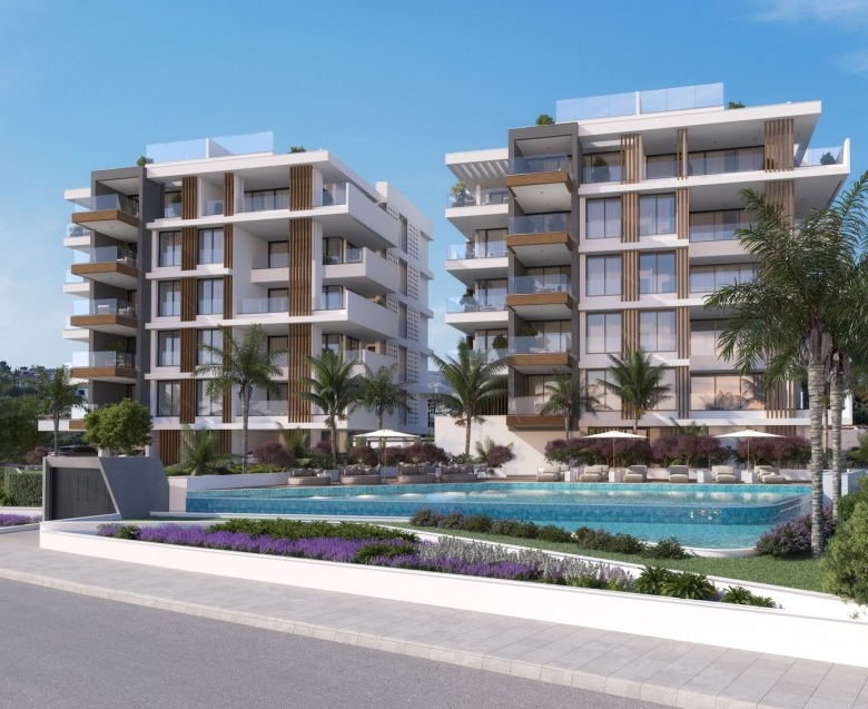 An exceptional contemporary residential complex, comprising of two 5-storey buildings with large swimming pool and beautiful landscaped garden. Each building consists of seven 2 bedroom apartments, four 3 bedroom apartments and two unique 3 bedroom penthouses with private pools, roof gardens and amazing unobstructed sea view. A luxurious modern development located in the Tourist area of Limassol, only 200m from the sandy beach. Excellent location, close to all kind of amenities and the best 5star Hotels of Limassol. Will be constructed with the highest standards and specifications and with top quality materials from reputable makers. Without exception, all the apartments are spacious and well-planned with big verandas and designed to offer the most of space and comfort. Each apartment comes with private parking and storage room.Delivery-June 2026