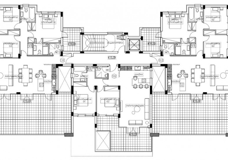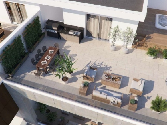 Four storey block consists of twelve luxurious apartments, three on each floor.Each two bedroom apartment is of 84.00 m² and it includes living room, kitchen and dining area, two bedrooms, one bathroom, a guest toilet and a spacious veranda.Each three bedroom apartment is of 115.00 m² and it includes living room, kitchen and dining area, three bedrooms of which one ensuite, one bathroom, a guest toilet and a spacious veranda.The fourth floor apartments include also a roof garden with an extra storage room. Each apartment has its own parking space and its own storage room. This building also provides a playground area on the ground floor.