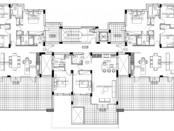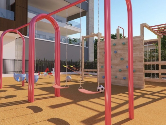 Four-storey block consists of twelve luxurious apartments, three on each floor.Each two bedroom apartment is of 84.00 m² and it includes living room, kitchen and dining area, two bedrooms, one bathroom, a guest toilet and a spacious veranda.Each three bedroom apartment is of 115.00 m² and it includes living room, kitchen and dining area, three bedrooms of which one ensuite, one bathroom, a guest toilet and a spacious veranda.The fourth floor apartments include also a roof garden with an extra storage room. Each apartment has its own parking space and its own storage room. This building also provides a playground area on the ground floor.
