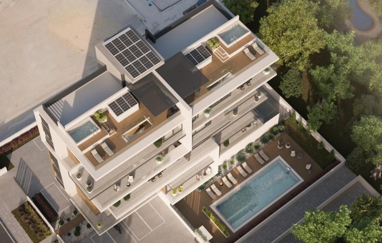 A contemporary residential project in Potamos Germasogeia tourist area of Limassol, just 600 meters from the beach. It is conveniently located within walking distance to all necessary city amenities, yet tucked away from the hustle and bustle of the seafront road. This new development features a modern 5-storey building with 12 spacious one-, two- and three-bedroom apartments and penthouses with private pools on the roof terraces. The common facilities include a swimming pool, barbecue area, covered and uncovered parking areas, storage area, an electric vehicle charging point and green areas. The complex benefits from secure gated entrance and video intercom entry system to all units. Each apartment has a storage room and a parking space, while the penthouses have 2 parking spaces. The large verandas and rooftop terraces provide beautiful views to the mountains and the city. This project offers a comfortable lifestyle to its residents and guarantees a successful investment generating substantial rental income.Delivery: August 2026