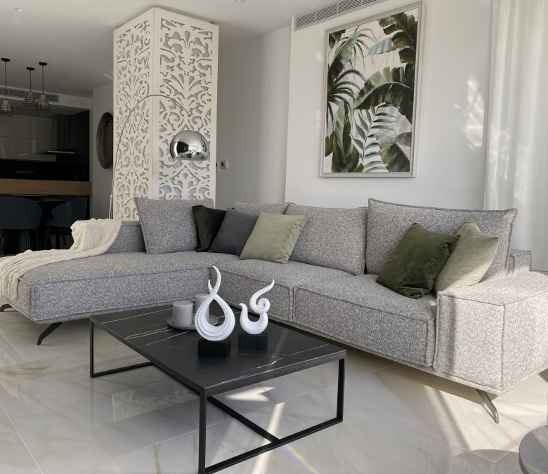 Modern 3 bedroom apartment front line has been completely transformed into a great living space equipped with the latest amenities and features such as solar panels for energy saving, walk-in closet, and built in closets. The open plan shared living space is fitted with a contemporary kitchen, that also encompasses the dining and living areas, it also features a home office space. The living room is fitted with seamless glass windows providing an unobstructed panoramic view. It boasts sweeping views overlooking the sea and beach with a corner view of a seasonal flowing river to the sea and is surrounded by landscaped gardens. The whole building has been renovated within 2021 year.