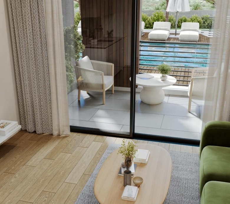 Situated in one of Limassol’s most rapidly developing and up-and-coming areas, puts you right at the doorstep of the city’s future. A short distance away is the world-class City of Dreams Mediterranean Resort & Casino, where entertainment, fine dining, and leisure converge. Nearby, MY MALL offers endless opportunities for shopping and dining, making it easy to find everything you need just minutes from your door. With excellent schools, the vast golf resort, Limassol Greens, and convenient access to the city centre and the bustling Limassol Marina, the location offers the perfect blend of suburban living and urban convenience – an ideal place to call home as this exciting neighbourhood continues to grow. The project can be described as a haven of modern living, designed to offer both style and serenity. Nestled within two sleek, three-story buildings, this exclusive residential development features a carefully curated selection of 24 two-bedroom and 23 one-bedroom apartments. Each home is a testament to contemporary design, with spacious, light-filled interiors that flow seamlessly onto private balconies, creating the perfect blend of indoor-outdoor living. Picture yourself starting your mornings with a refreshing dip in the large communal pool, surrounded by beautifully landscaped gardens, or working out in the fully equipped gym before heading off to your day’s activities. From basement parking to expansive green spaces, every detail of the project has been crafted with your comfort and convenience in mind.