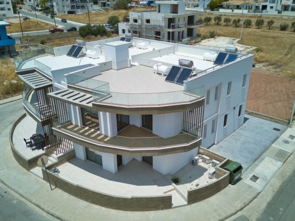 Amazing, unique project of four semi-detached apartments in a very quiet but convenient location in Paphos. Within walking distances to supermarkets, pharmacies’, schools and many more amenities. Great Sea views, privacy, spacious and bright bedrooms and living areas. Quality finishes and modern design make this project so enticing and ideal for a dream home or investment property. This unit has a roof garden of 40 square meters.