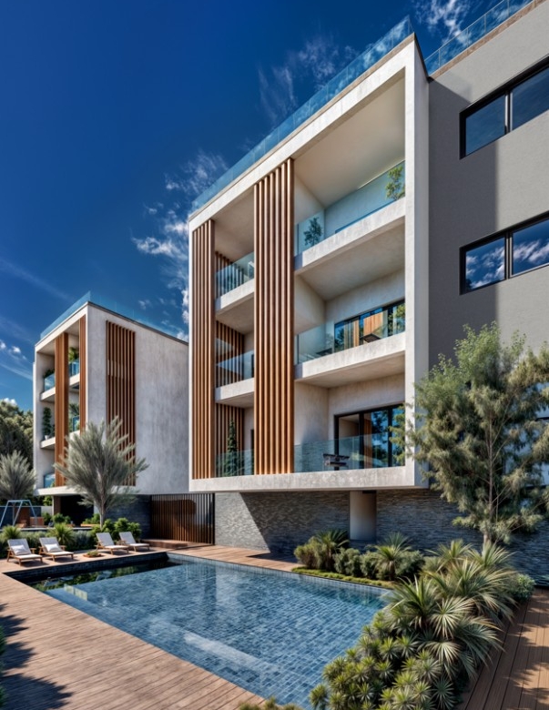 An exclusive collection of 24 beautifully designed units, featuring 1 or 2-bedroom apartments. Each unit is crafted meticulously, ensuring a blend of modern aesthetics and practical functionality. Residents will enjoy a communal pool and a playground, and each apartment comes with covered parking, and electric shutters in all bedrooms.The serene location is often recognized as the next desirable area of Paphos, offering opportunities for an active and fulfilling lifestyle. Residents will enjoy proximity to the Geroskipou Beach, the finest sandy beach in the Paphos area, easy access to various recreational facilities and all the amenities offered by Paphos City Centre.Delivery – October 2026.