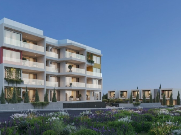 This exclusive development features 24 modern apartments and 5 elegant townhouses, designed to elevate your lifestyle to new heights. Located in a prime spot in Cyprus, just steps from Aspire Private British School, a 5-minute drive from the city centre, and within walking distance of the beautiful Venus Beach. Some apartments offer stunning sea views, others boast amazing mountain views, all with spacious layouts designed for comfort and style; residents enjoy a communal pool, secure parking, and the convenience of being close to both the beach and city center—perfect for those seeking a blend of relaxation and urban living.Delivery-September 2027