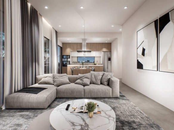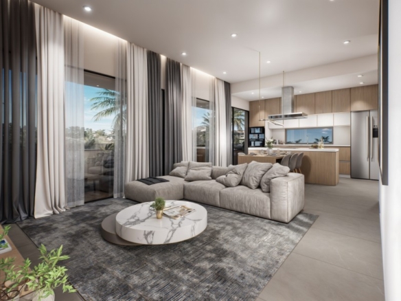 An exceptional location and design focused on luxurious, modern open-plan living. The development comprises 7x two-bedroom, 1x one-bedroom and 2x three bedroom apartments ranging from 55 to 104 m2 spread across three floors. Luxury amenities include Smart technology, Video intercom, Seaview, covered parking, storage, and a communal pool. Each apartment boasts a unique modern layout, harmoniously integrating space and natural light, ensuring an effortlessly refined living experience. Secure the chance to own this exclusive apartments and elevate your lifestyle. Delivery-July 2027.