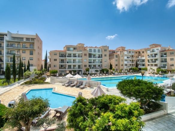 Situated within walking distance of shopping areas, schools, universities, the city center, and the beaches of Pafos, Elysia Park is a resort meticulously designed to cater to the comfort, relaxation, and enjoyment of discerning property owners.The resort boasts many unparalleled services and facilities, including a concierge, GYM, SPA, and indoor and three outdoor swimming pools exclusively available for residents. Additionally, residents can enjoy the amenities of Elysia Breeze café, a pharmacy, a kiosk, an ATM, and a kids’ playground.The property itself features an open-plan layout with spacious living/dining areas and a separate fully equipped kitchen with access to a veranda. Patio doors from the living area open up to a generously sized covered veranda (13.80sqm) offering views of the swimming pool and project gardens.There are three large bedrooms with fitted wardrobes, with the master bedroom featuring en-suite facilities. A family bathroom completes the property. An uncovered parking space and storage are also available.The apartment is in excellent condition and is sold furnished and equipped, with the added advantage of a Title Deed being available.