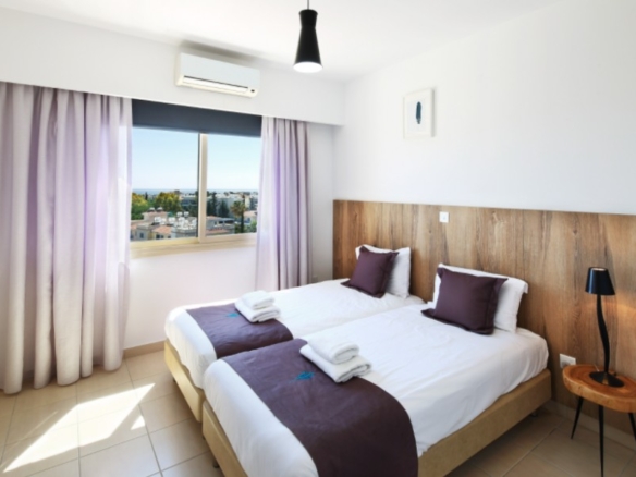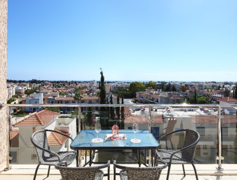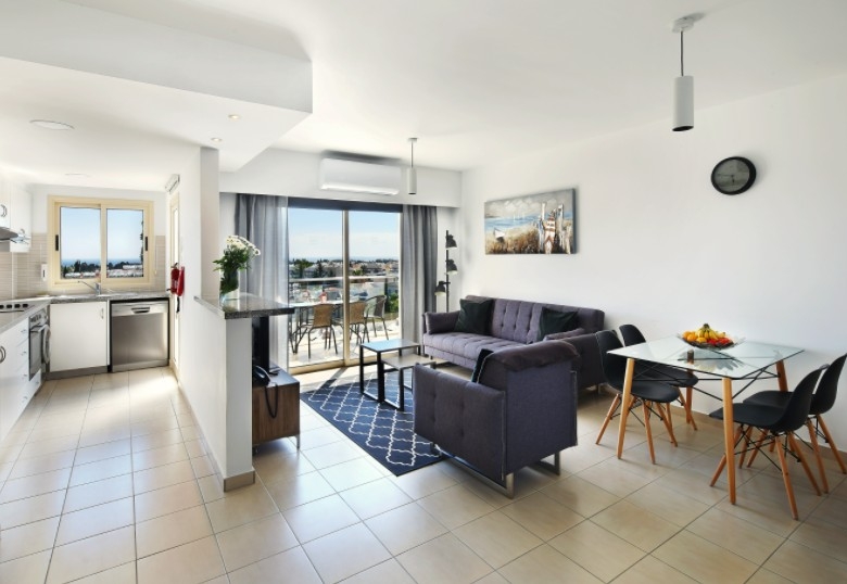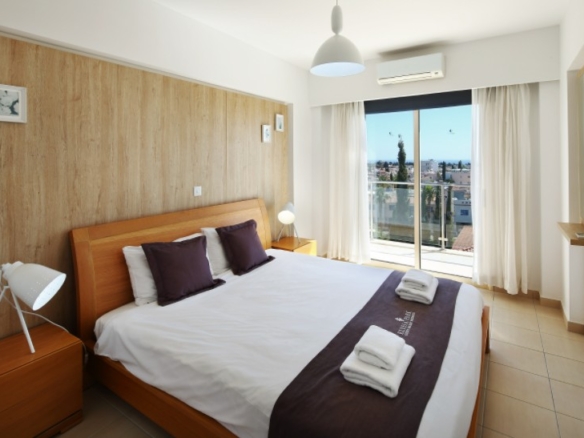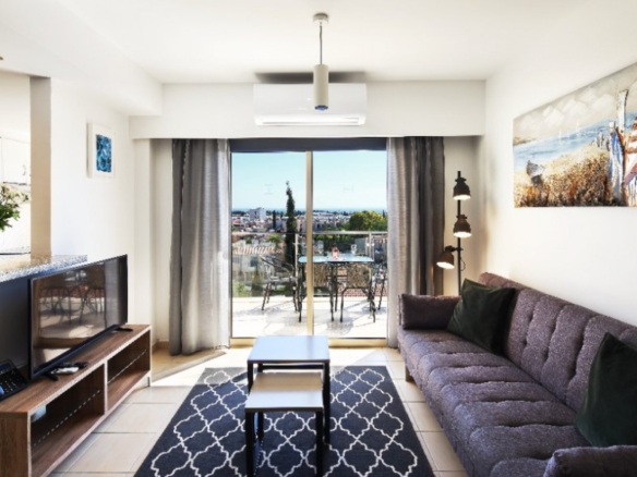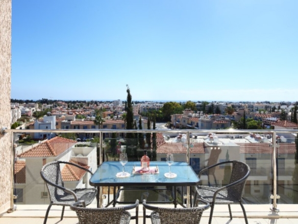 2 bedroom apartment for sale Elysia Park. This fabulous resort has been designed with the comfort, relaxation and offers wealth of services and facilities. Within walking distance you can find the bustling nightlife, shopping areas and beaches of Pafos seafront. The apartment has an open plan living/dining area and kitchen. Patio doors from the lounge & kitchen lead out to a covered veranda offering views to the swimming pool. 2 spacious bedrooms with fitted wardrobes and family bathroom conclude the apartment.