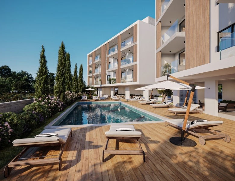 Project comprises of 2 blocks of studio, 1-bedroom and 2-bedroom apartments and a plethora of on-site facilities. It is located in the sought-after area of Universal in Pafos, the most popular area for short-term rentals in Cyprus. Consisting of 27 units in total, a reception area, a fitness centre, covered communal areas, kids playground, landscaped gardens and a 80 square-meters swimming pool, is an ideal project for both investment and permanent living. Delivery – Q3 2027