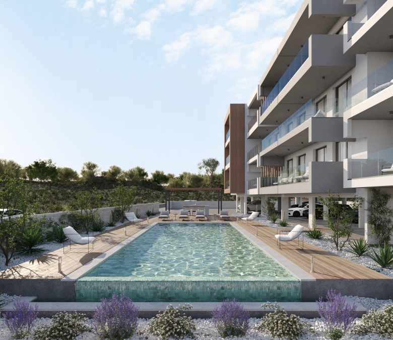 Exclusive residential complex offering 27 elegant apartments spread across three inviting floors. Residents enjoy the luxury of a large communal overflow swimming pool, beautifully landscaped gardens, and a welcoming outdoor snack bar, perfect for relaxing and socializing under the sun.Indulge in unobstructed sea views from your home, thanks to the expansive public green area across the plot. This feature enhances the sense of tranquility, creating a secluded atmosphere that residents truly appreciate.Perfectly positioned, project is just moments from Pafos Town Centre, offering easy access to vibrant city life. It’s also within walking distance of the Iasis Private Hospital, Neapolis University, and the stunning seafront.Delivery-December 2025