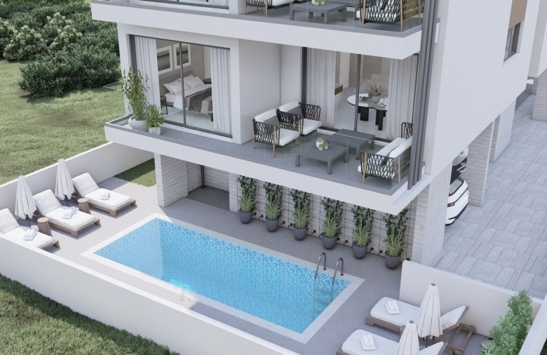 The apartment is located in Kato Paphos, which is a popular area in the city of Paphos, Cyprus. The property is off-plan, indicating that it’s not yet constructed or completed. The apartment has 2 bedrooms, offering two separate sleeping spaces. The covered area of the apartment is 96 square meters, providing a sense of its interior living space. It’s a 30-minute drive to the nearest airport, making it convenient for travel. The apartment is a 5-minute drive away from the beach, ideal for those who enjoy coastal living. The building has an elevator, making it easier for residents to access different floors. Golf enthusiasts will find a golf course within a 15-minute drive, offering recreational opportunities. Private Parking (covered): The property includes covered parking, ensuring protection for your vehicle. The apartment is a 5-minute drive from the town center and also within walking distance, providing easy access to shops, restaurants, and other amenities.