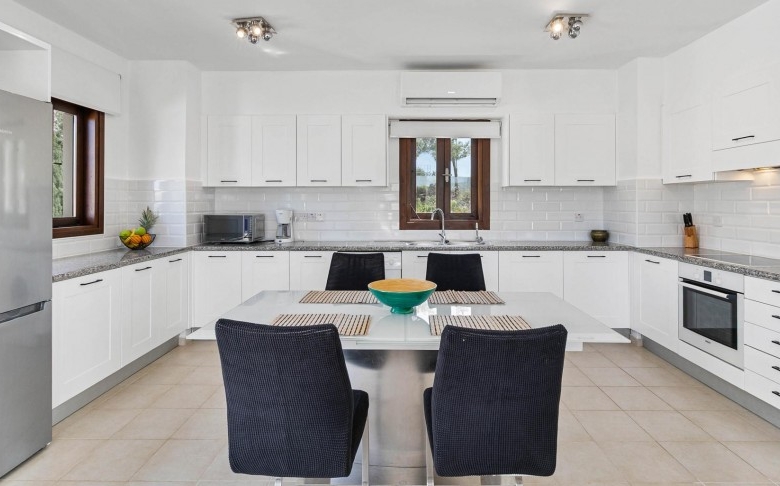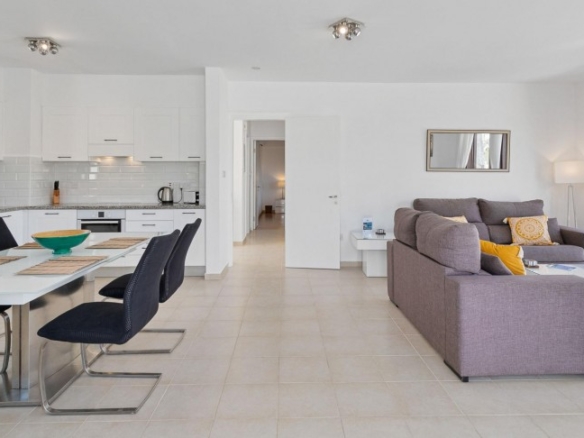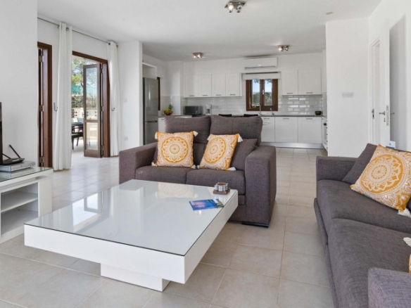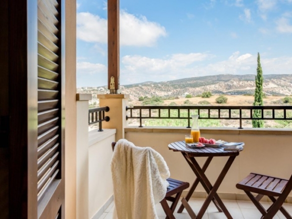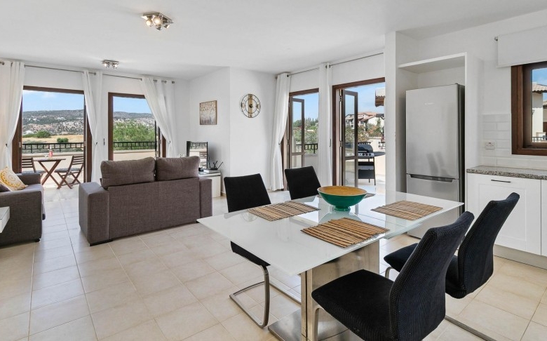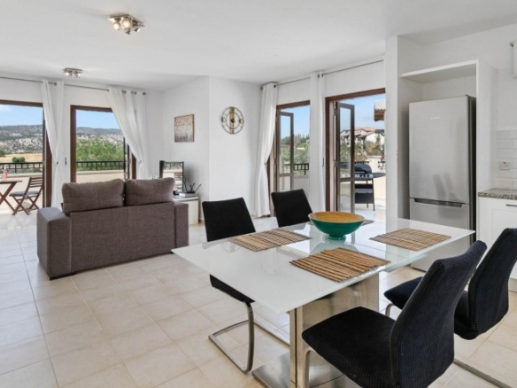 This fantastic two-bedroom apartment is located in the beautifully landscaped Zephyros Village, close to the free-form communal swimming pool and is part of the Award-Winning Aphrodite Hills Resort. The apartment is located on the first floor and is tastefully decorated in neutral tones with contrasting flashes of colour on the soft furnishings and has modern fixtures and fittings throughout. The apartment has a large modern kitchen constructed from Italian wood and comes complete with all kitchen appliances. The large open plan living, dining and kitchen areas feature beautifully tiled floors and experience tremendous light through its many French doors. Three Large terraces can be enjoyed when exiting the living & dining areas as well as the master bedroom of the property offering panoramic views and certainly is one of the main highlights of this remarkable property.All bedrooms feature attractive parquet floors with fitted wardrobes and bedside cabinets. This fantastic property is conveniently located within walking distance to the Village Square, with its array of Shops and Restaurants, Pharmacy & Medi Centre, the Retreat Spa, PGA National Golf Course Clubhouse and Tennis Academy. A remarkable opportunity either for Investment, Holiday Home or Permanent Residence not to be missed.Additional Features include air condition units, large terraces (54m2), electrical appliances, allocated parking, panoramic views, beautiful communal pool.