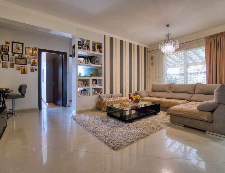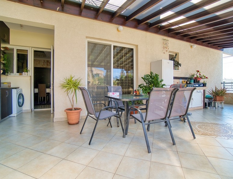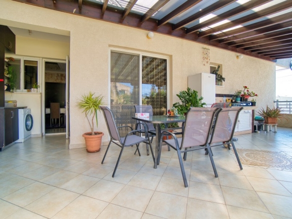 Located in exo vrisi, a stunning 2 bedroom apartment finished to a very high standard. Upon entering the property you are met with the very spacious, open kitchen/dining/living area. In the kitchen you will notice there are high quality, Miele appliances used there. There is also back lighting behind all the kitchen units illuminating the work tops. There are 2 spacious bedrooms both leading out onto a 20sqm covered veranda with magnificent views down to the sea. Outside the property there is a very large veranda that covers 40sqm, it is equipped with an outside kitchen and a small utility area with a washing machine and cupboards space.