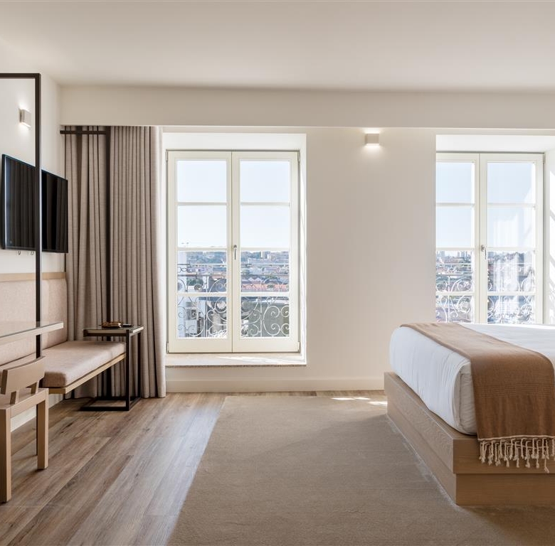 T1(T0 +T0) bedroom apartment with 83 sqm, brand new, with terrace, located on the banks of the River Douro, in Gaia, at the Fervença Palace. Close to the Port wine cellars, the D. Luís Bridge, the Cathedral and a few minutes from the city centre, this exclusive condo is a carefully thought-out rehabilitation project of a 17th century palace, which has kept the identity and architectural characteristics of the period. Facing south, great sun exposure and a magnificent view of the river and the city, the Fervença Palace also offers you the possibility of obtaining a fixed return associated and being able to buy your apartment fully decorated and furnished