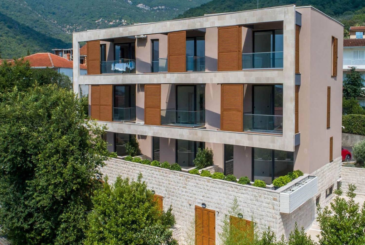 Two bedrooms apartments for sale ina residential building inTivatThis residential building “Tamaris” is located in the center of Tivat, next to the luxury estate Porto Montenegro, on the rim of the new Boka Place district.Tivat is in the central part of the Bay of Kotor. Once it was a small coastal town, and today is the center of nightlife and important events, thanks to the Porto Montenegro residential area and marina for superyachts.Tivat is a prime location to reside in year-round, compared to other coastal regions of Montenegro.The residential building “Tamaris” consists of 12 residential units, 9 of which offer beautiful sea views. The building has been carefully designed to make its occupants feel comfortable and carefree with the grace of a peaceful life and the privacy of living at sea.The building consists of 3 residential units on the ground floor, whose specific position and space usage provide a lot of light, and three floors with three residential units each. Apartments are of different plots and structures: one-bedroom and two-bedrooms, with balconies or terraces surrounded by the greenery, big enough to resemble smaller yards.The building has two entrances.Modern middle and high-range materials were used in the construction process. A team of architects made sure that the modern Mediterranean style of the building matched the style of nearby Porto Montenegro residences.The apartments have a maximal space usage design and are mostly still unfurnished, so future owners have the opportunity to arrange them by their own preferences.There is an outdoor parking place for each apartment. There are 14 parking places within the building’s outdoor parking, available exclusively to the residents of the building.Available two-bedroom apartments:Ground floor, fully furnished apartment, 102m², 275.000€Ground floor, 69m², 172.500€SOLDSecond floor, fully furnished apartment, 55m², 163.500€SOLDSettled in a peaceful and quiet neighborhood, in the nearby vicinity of all necessary amenities, these apartments offer great rental potential and are an excellent investment opportunity.“Tamaris” building is very conveniently located in Tivat, within short driving distance to the most important locations and cities around: Tivat airport 3km, Old Town Kotor 13 km, and Podgorica airport 85 km away.If you like these newly built apartments, contact us for more information.