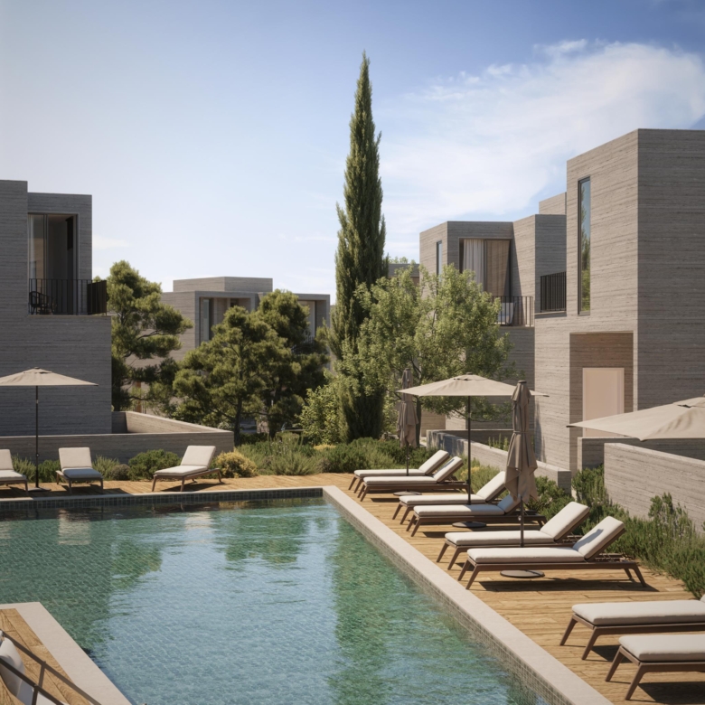introducing our newest development in the charming village of Emba, where contemporary living meets serene surroundings. This project offers a harmonious blend of 17 exquisite villas and 19 modern apartments, all strategically located for your convenience.