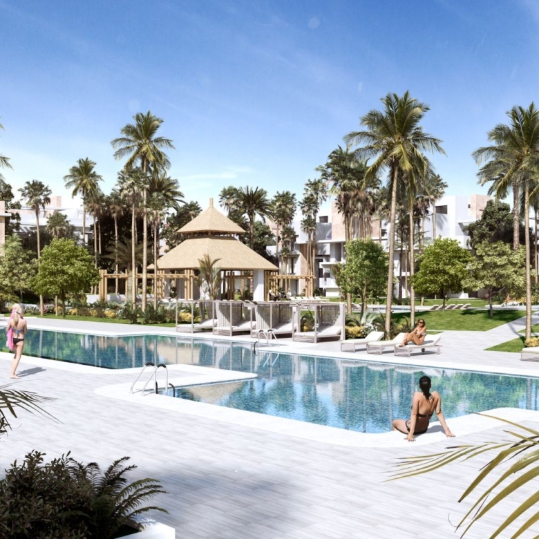 Ayana brings a unique concept in resort development to the Costa del Sol. Thoughtfully designed to seamlessly blend into the environment, Ayana is designed to accentuate the quintessential lifestyle and casual vibe of Estepona. Ayana showcases an exceptional and truly effortless living experience. Featuring sophisticated architecture by Villarroel Torrico, inspiring interiors from Gunni & Trentino and as a standard fitting in every apartment shaowcases Lutron’s wireless smart-home automation system, a first for apartment development on the Costa del Sol . Ayana is built around 27,000m2 of tropical, landscaped gardens with three outdoor pools, one of which is heated, a central Clubhouse complete with co-working lounge, café bar, spa, indoor pool and gymnasium – and with 24-hr security.