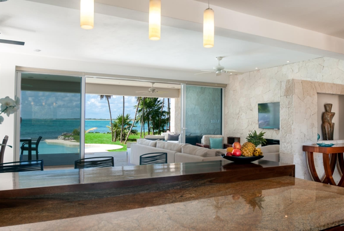 The villa offers approximately 541 square meters (5,828 square feet) of interior living space. it features three bedrooms, each with an en suite bathroom, along with a guest half-bath. The open-concept kitchen, dining, and living area creates a spacious and functional layout, with high ceilings and natural light throughout. The original design allows for easy expansion on the upper level, with the potential to add two or more bedrooms while capturing elevated Caribbean Sea views.