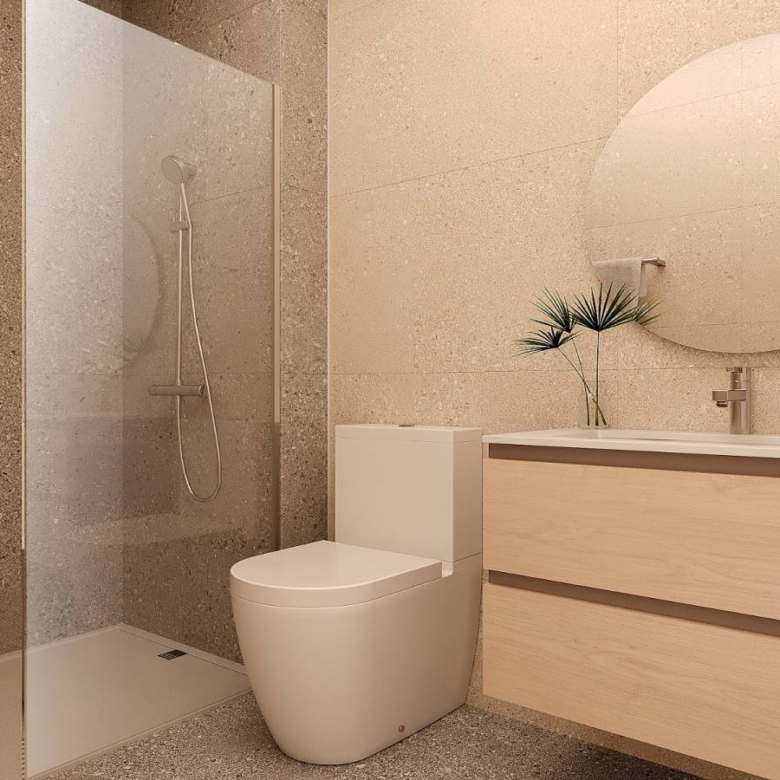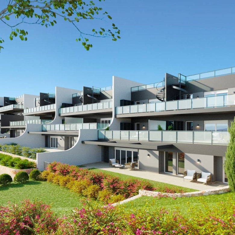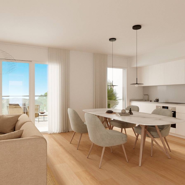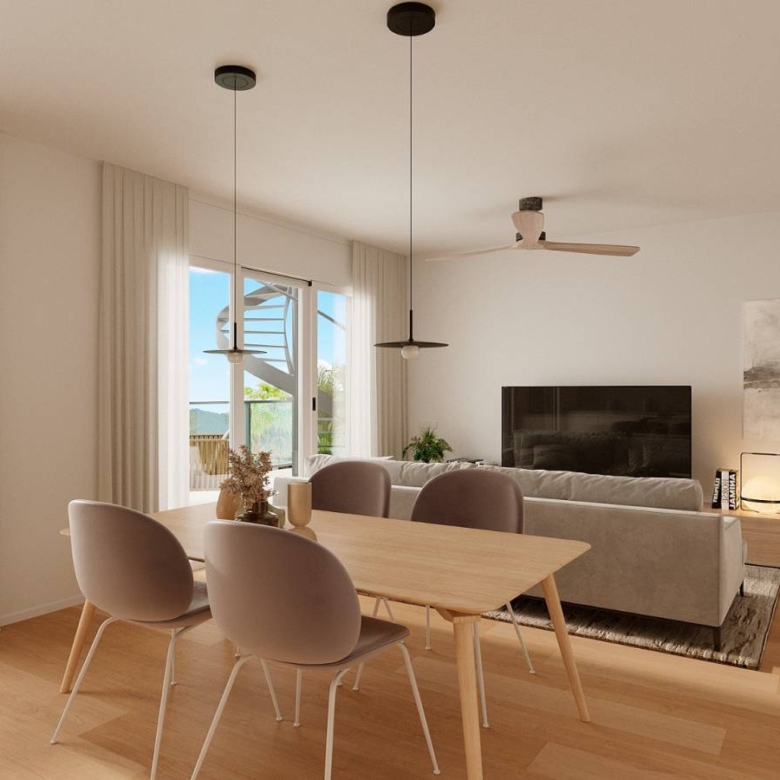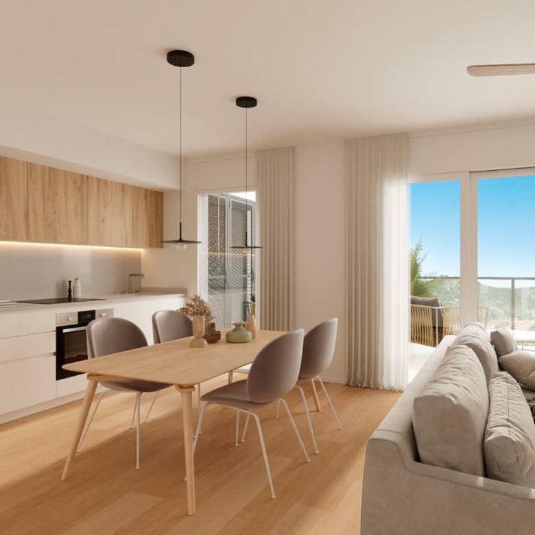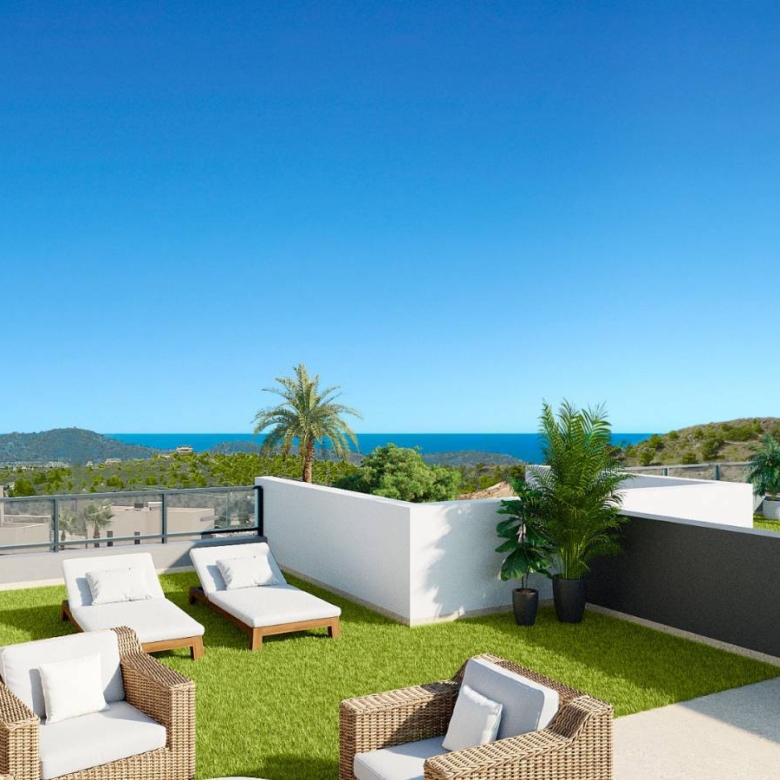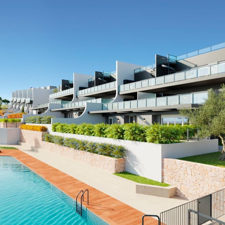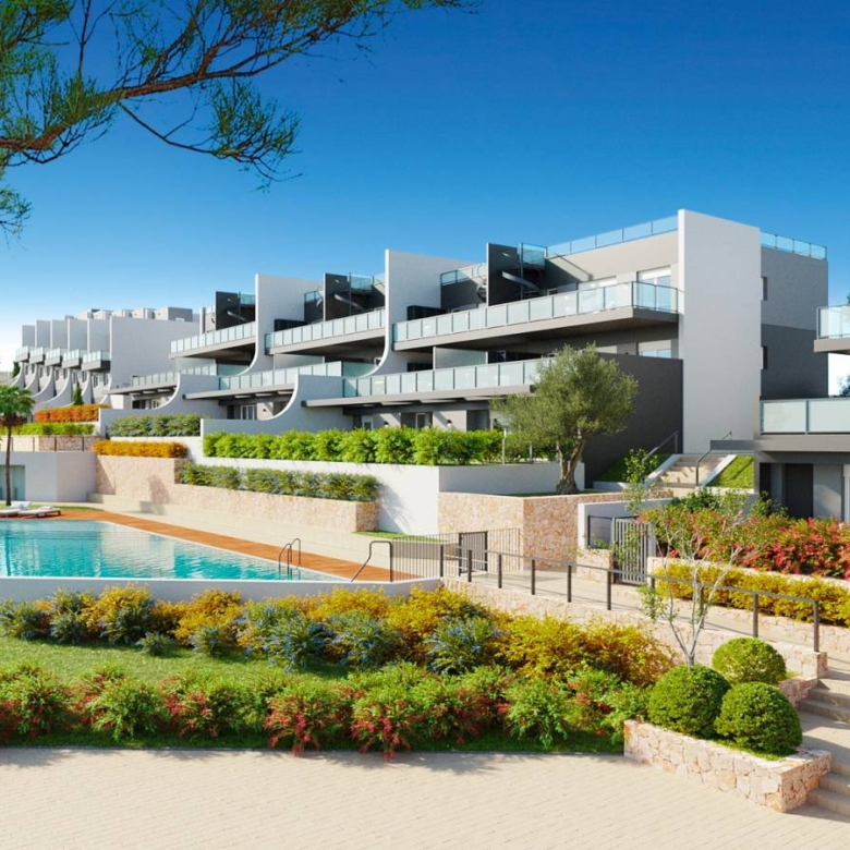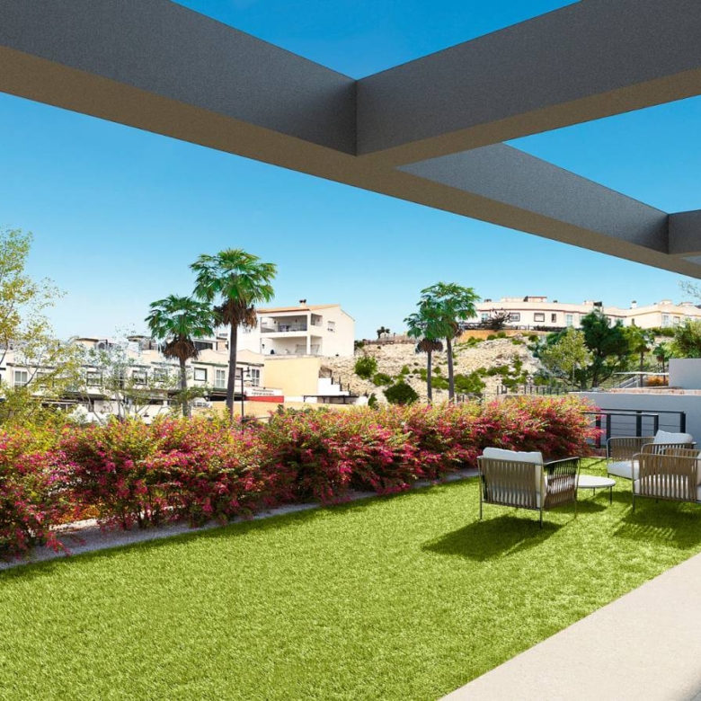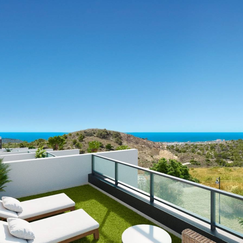 Apartments in Balcon de Finestrat, Costa Blanca The apartments with 2 and 3 bedrooms and 2 bathrooms, and the townhouses and houses / villas with 3 bedrooms and 3 bathrooms, have a careful distribution and enjoy beautiful views of the common areas with swimming pools and private gardens, the natural environment, the skyline from Benidorm and some homes also with sea views. The new homes built with excellent qualities form a beautiful residential area, private outdoor parking, storage room, garden areas, and children’s play area. The apartments have a communal pool. Townhouses and villas the private pool is optional. A new residential in a quiet area, well connected and close to Benidorm, beaches and the Puig Campana golf course. In the first phase it includes 30 apartments and 14 townhouses, located less than 8 km from the Finestrat cove and the beaches of Benidorm. The natural environment and its magnificent location between the towns of Finestrat and Benidorm, and the wide beaches make new homes one of the best options when buying a home on the Costa Blanca. All services are a few kilometers from El Balcon de Finestrat: La Marina shopping center, restaurants, supermarkets, schools, pharmacies and banks, etc. Property ID: GH-307539 Price: €274,000 Property Size: 71 m2 Land Area: 90 m2 Bedrooms: 2 Bathrooms: 2 Property Type: Apartment Property Status: For Sale
