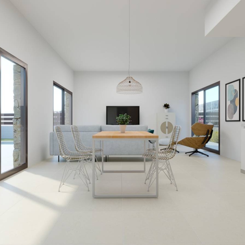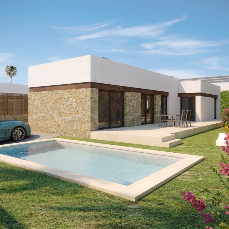 One floor villa in Balcon de Finestrat, Costa Blanca. The property has 3 bedrooms and 2 bathrooms, private pool of 6 x 3 meters, private parking, air conditioning included, white goods included, electric blinds, alarm system. These contemporary homes combine modern lines with traditional elements such as the stone facade and wood, providing the warmth of traditional construction. The distribution of these homes helps to make the most of the sunlight throughout the day and, equally, their layout favours privacy. Close to the beaches of Benidorm, Vila Joiosa and the cove of Finestrat and only two kilometres from the La Marina shopping centre, the Terra Mitica theme park and prestigious five-star resorts such as the Asia Gardens and Melia Villaitana. Charming villages such as Finestrat and Polop are the perfect place to discover the tradition and gastronomy of the land and its traditions. Located at the base of Puig Campana, they offer visitors countless hiking routes and are a paradise for lovers of cycling and other mountain sports. Nearby services: - Golf course- Shopping area- Restaurants and cafes- Beaches Property ID: GH-307644 Price: €495,000 Property Size: 114 m2 Land Area: 202 m2 Bedrooms: 3 Bathrooms: 2 Property Type: Villa Property Status: For Sale