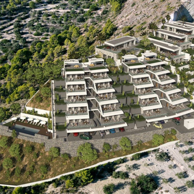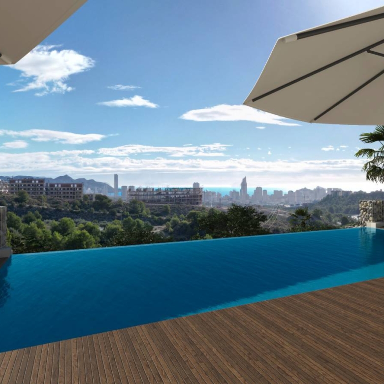Penthouses in Balcon de Finestrat, Costa Blanca Luxury high-rise properties with independent access, a residential designed so that all the properties have privacy. Each property has 2 bedrooms and 2 bathrooms (1 en suite), spectacular terraces with views of the sea and the Benidorm skyline, parking space and storage room included in the price. Features: - Top floors with additional solarium.- Parking space and individual storage room included- Communal infinity pool- High quality materials and finishes- Fully fitted kitchen with Bosch designer appliances- Mitsubishi ducted air-conditioning installation- Complete bathrooms with screens and underfloor heating- Motorised blinds- LED lighting Property ID: GH-307669-D Price: €430,000 Property Size: 75 m2 Land Area: 230 m2 Bedrooms: 2 Bathrooms: 2