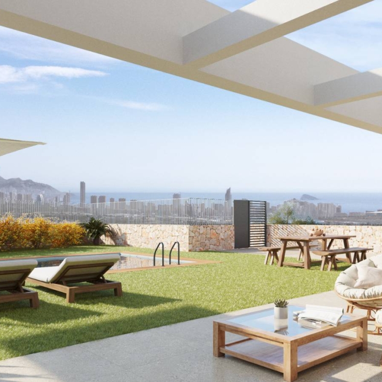 Semi-detached villas in Balcon de Finestrat, Costa Blanca The properties have 3 bedrooms and 3 bathrooms, have a careful distribution and enjoy beautiful views to the communal areas with swimming pool and private gardens, to the natural environment, to the skyline of Benidorm and some properties also with sea views. The new homes are built with excellent qualities and form a beautiful residential, private outdoor parking, storage room, garden areas, and children’s play area. The residential also has a communal swimming pool. Located in a quiet area, well communicated and close to Benidorm, beaches and the Puig Campana golf course. The natural surroundings and its magnificent location between the towns of Finestrat and Benidorm, and the wide beaches make the new homes one of the best options when buying a property on the Costa Blanca. All services are just a few kilometres away from El Balcon de Finestrat: La Marina shopping centre, restaurants, supermarkets, schools, pharmacies and banks, etc. Property ID: GH-307754-D Price: €420,000 Property Size: 198 m2 Land Area: 150 m2 Bedrooms: 3 Bathrooms: 3 Property Type: Villa Property Status: For Sale
