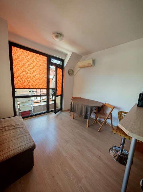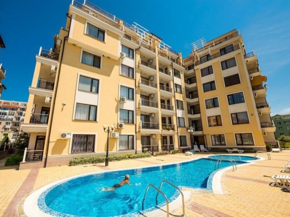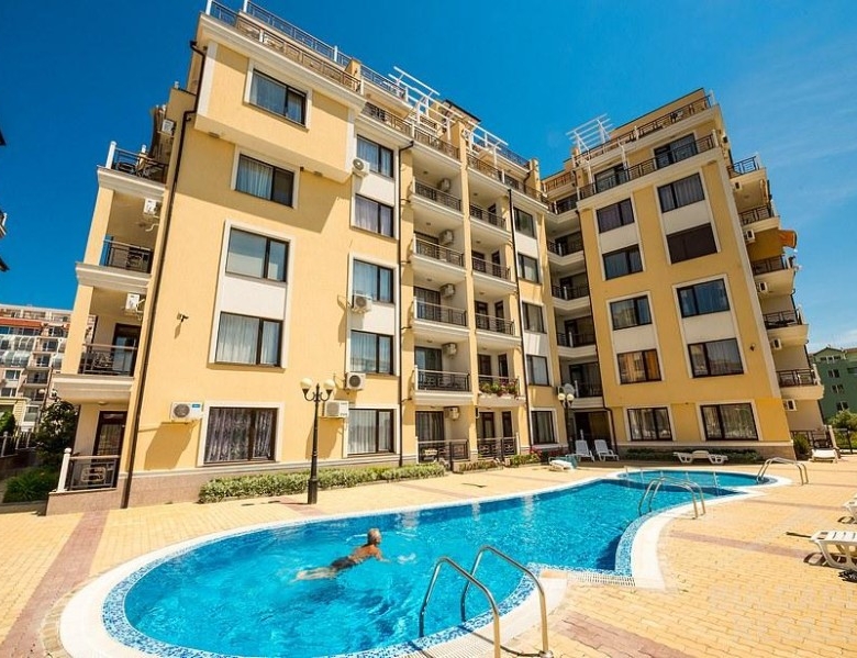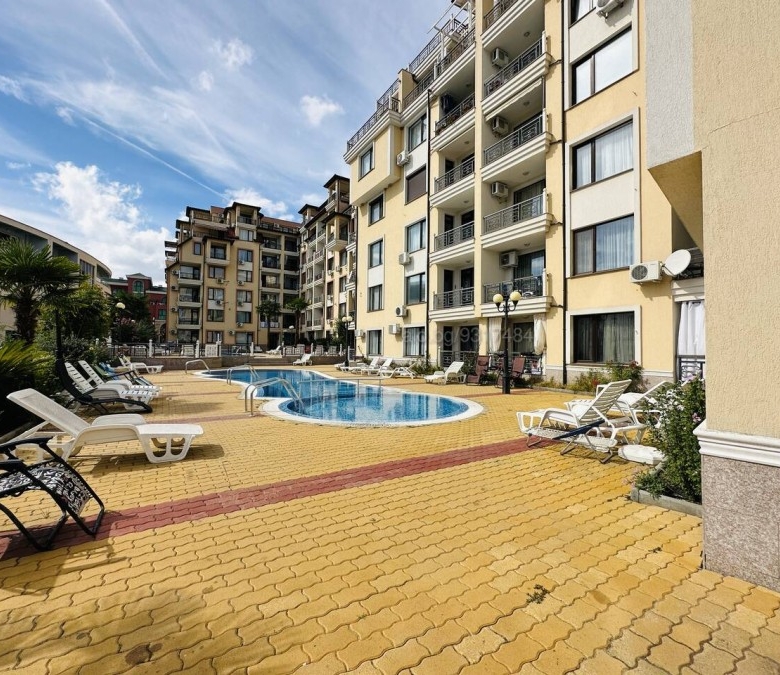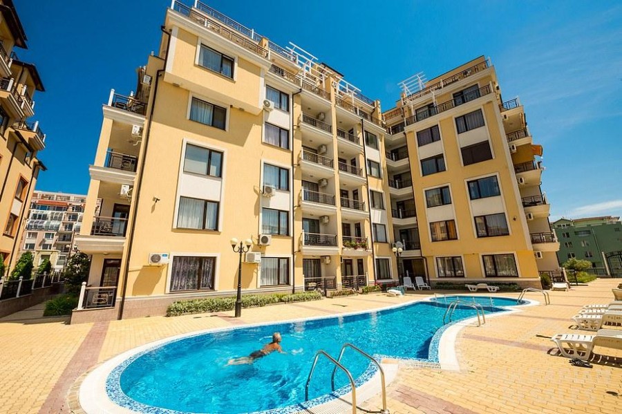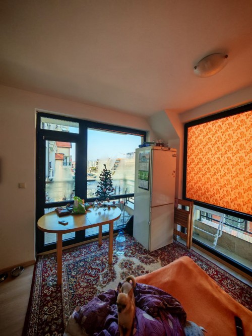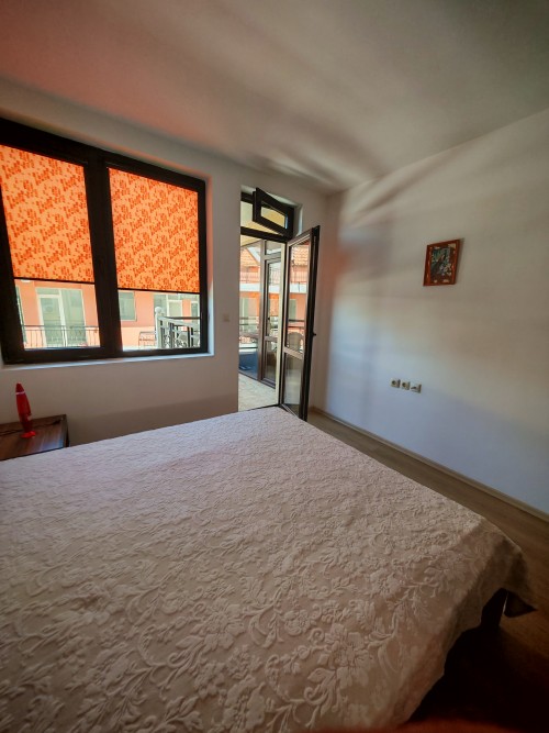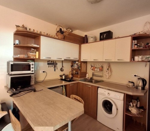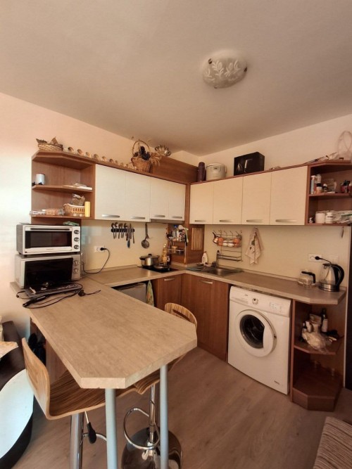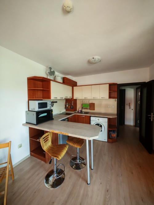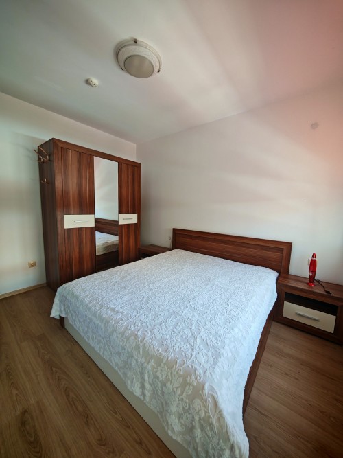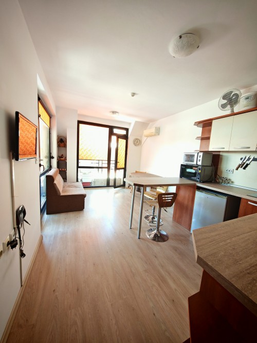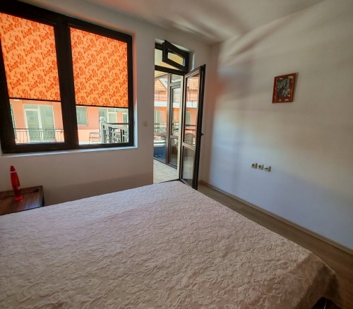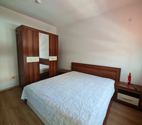 Bargain! 1 BED apartment, 50 sq.m., in Rodina 2, Sveti Vlas, 300 m to the sea We are pleased to offer you fully furnished 1 bedroom apartment in coastal town of Sveti Vlas. The property is part of complex Rodina 2 (2014), which is set 300 m to the beach. The apartment has a total living area of 50 sq.m. and is situated on the 4th floor. It comprises of: – kitchen with living-room; – one bedroom; – bathroom/WC; – balcony. The apartment is offered completely finished and furnished as shown on the photos. Annual maintenance fee is 450 EUR. Rodina 2 is a wonderful complex located in the resort of Saint Vlas, only a 5-minute walk to the beach. For the convenience of the residents the complex provides: * outdoor swimming pool * lift * outdoor parking * garden * shops * access control * 24-hour security There is a well-maintained infrastructure in the area and Marina Dinevi yacht port is 1.3 km away. The complex is suitable for those who prefer a quiet and relaxing holiday, not far from the resorts local amenities.