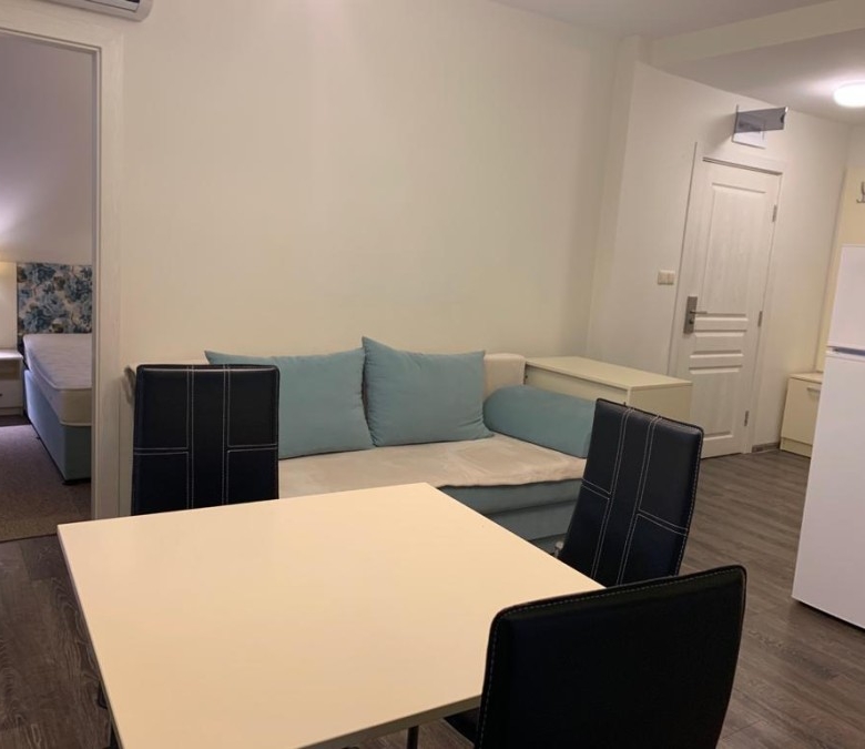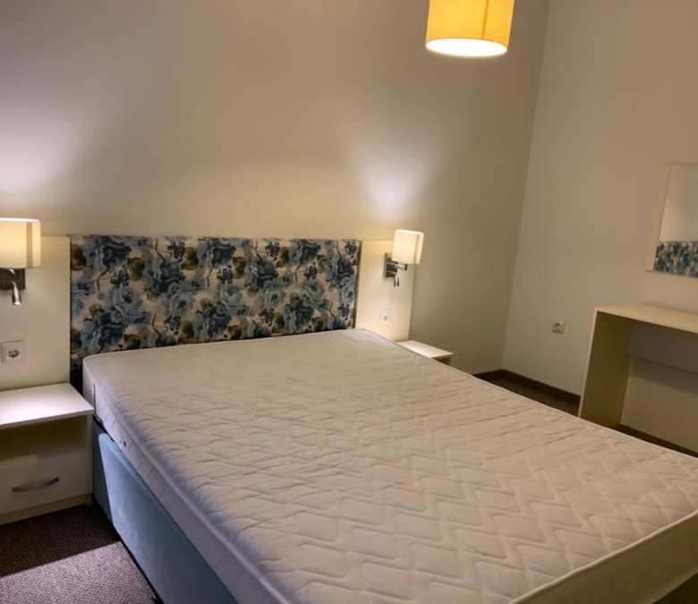 Bargain! 2 BED apartment, 60 sq.m. in Tarsis – Club & Spa (Sunny beach) The property is part of recently built apart-complex Tarsis – Club & Spa (2013) in the most green and quiet part of Sunny beach resort. Distance to the beach is less than 10 min walking. The complex has 2 swimming-pools, relaxing zone around the pool, landscaped garden, children’s playground, Spa center, gym, restaurant, pool bar, piano bar, beauty studio. The garden surrounds the whole complex and is a place where you can chill out and have a drink in the hot summer days. The apartment which is offered for sale is situated on the 5th floor and has views towards surroundings. It is fully furnished and ready to accommodate its new owners. Total area – 60 sq.m.The property is nicely furnished, fully equipped, perfect for a holiday home and renting out. The apartment offers: – kitchen with lounge; – 2 bedrooms; – Bathroom/WC; – Terrace. The apartment is offered fully furnished. It is suitable for permanent living as well as for holiday rentals. The complex is one of the most preferred places for vacation in Sunny beach. Annual maintenance fee – 12.5 EUR/sq.m.