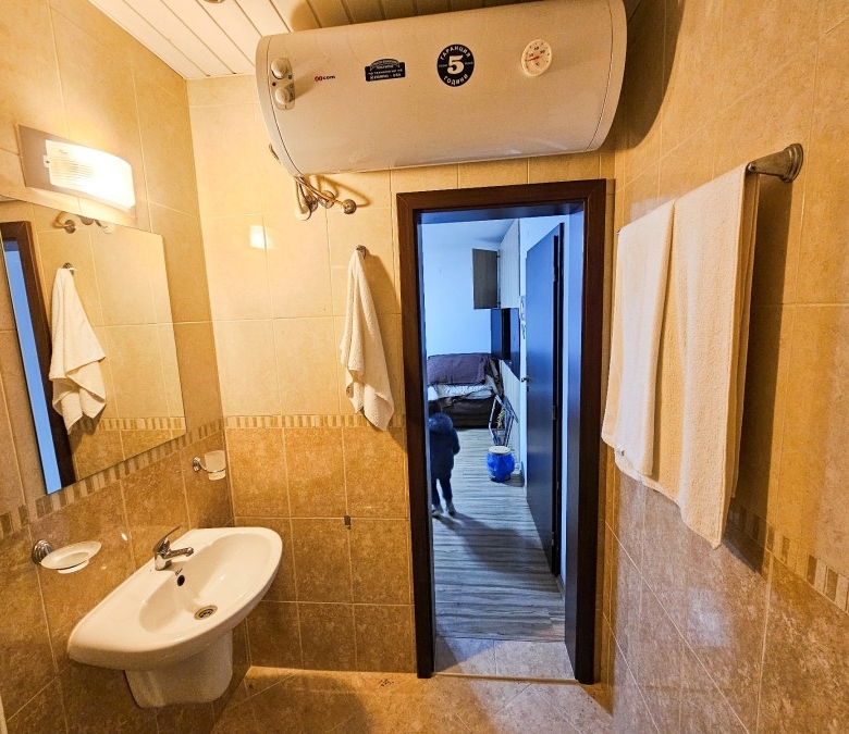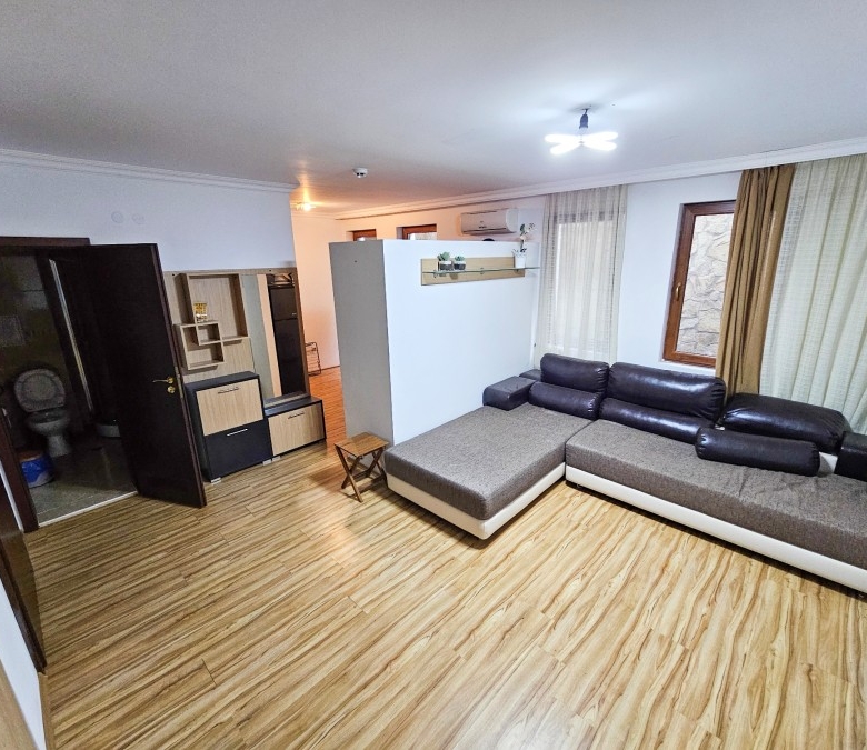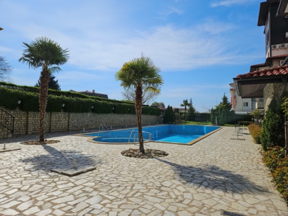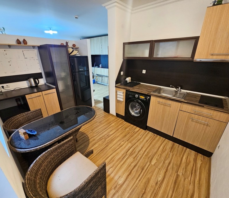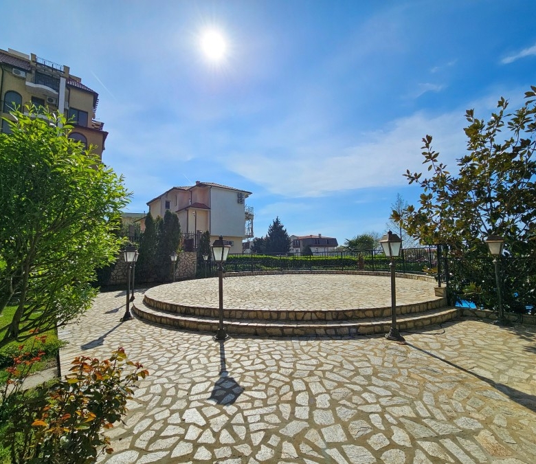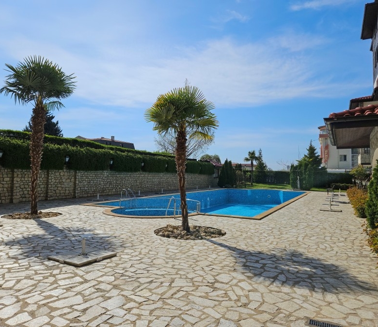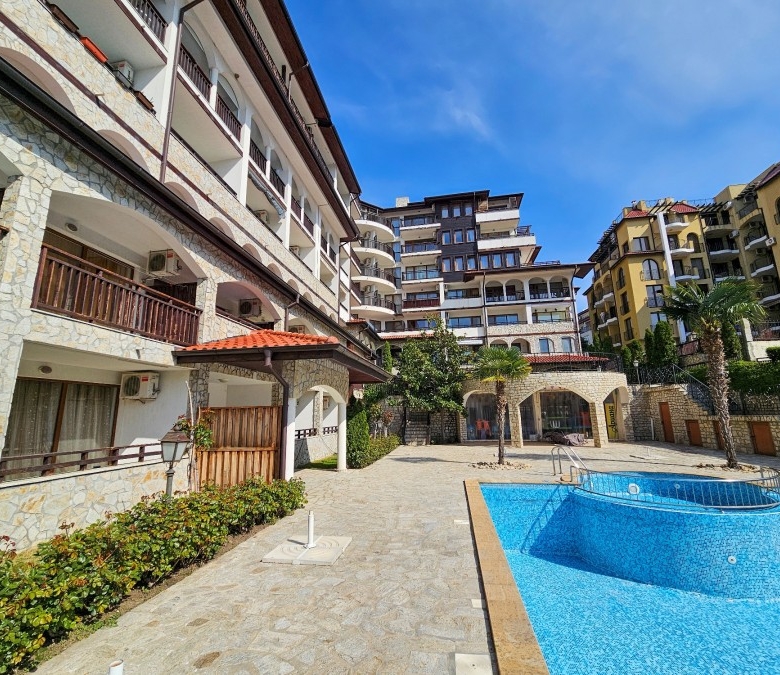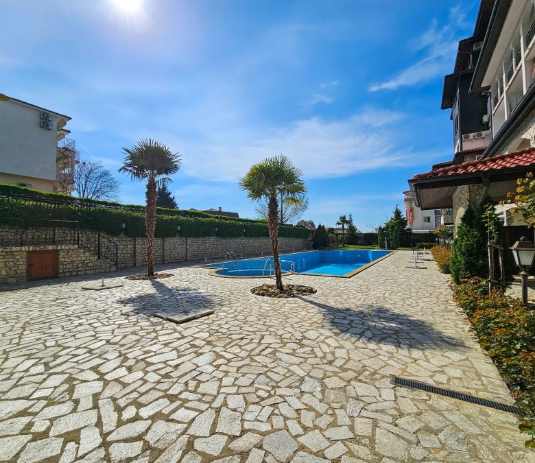 Bargain! Spacious studio, 44 sq.m., in Amphora complex, St. Vlas, 50 m to the sea! We would like to present you this fully furnished studio apartment close to the golden beaches of the seaside resort Sveti Vlas (second line, 50 meters to the sea) and 100 meters from Marina Dinevi. The property is located on the floor – 2 with a total area 43.94 sq.m., The flooring is with tiles, the walls are painted, the windows have PVC joinery. The comfortable furniture and equipment included in the final price can be seen in the photos. Amphora complex is located in the central part of the famous resort of Sveti Vlas, with a total of 150 apartments and offers around the clock video surveillance of the common parts. Its architecture combines traditional Bulgarian style and modern elements, with high quality construction materials. Because of the height of the terrain and the proximity to the sea, the complex offers stunning panoramic views. Some of the amenities in the complex include: * Cafe; * Massage room * Swimming pool for adults and children * Area for lounges * Reception * Parking lot * Security Annual maintenance fee – 600 EUR Nearby you will find many shops, cafes, pharmacy, hairdresser, taxi and bus stop for regular transport. Additionally, the area provides the following amenities for a pleasant and comfortable living and entertainment: a restaurant, a food market and a supermarket.