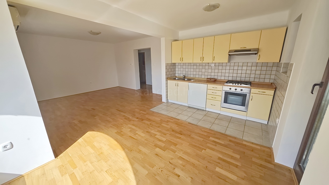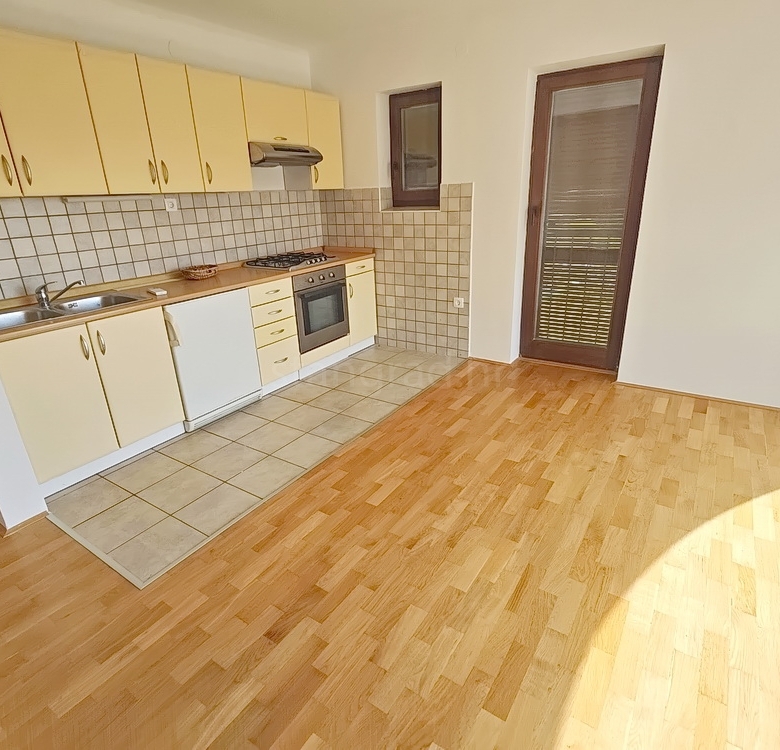 Located in a quality building, the apartment is positioned on the ground floor. It has a total living area of 72 m², which includes an entrance hallway, a living room with a kitchen and dining area, two bedrooms, a bathroom, a separate toilet, a loggia, and an uncovered terrace. The property has been completely cleared of previously used furniture, offering the future owner a fresh start for furnishing according to their own taste.
