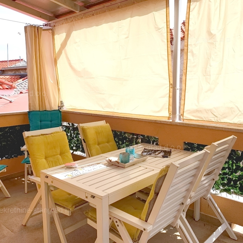 Within the traditionally attractive Adriatic and Kvarner tourist region of the island of Krk, we offer a well-maintained and well-maintained house for a tourist stay or residence. This house is located in the beautiful coastal town of Baška in a prime location not far from the sea. Structurally speaking, this is a detached house. The object of excellent quality is built on a total of 2 spatially useful floors. The house contains 2 separate apartments. The total area of this house is 79 m2. This area includes a studio apartment of 26 m2 on the ground floor. On the first floor there is a two-story apartment that extends over the 1st and 2nd floors. On the first floor of the apartment there is a kitchen with a dining room, a living room, a bathroom and a terrace, and on the second floor there is a bedroom and an additional bedroom in the loft. The interior of the property is particularly well maintained and fully equipped with the necessary technical devices and high-quality furniture. The described property also includes a piece of a neat and well-maintained yard. The yard of the property includes a place arranged for comfortable parking of vehicles. In addition to the above, it should be noted that the house also has some views of the sea. The house in question is owned by a physical obligation and upon transfer of ownership is subject to the calculation of real estate transfer tax in the amount of 3%. The owner of the property guarantees the orderliness of the relevant ownership documents and the possibility of a quick transfer of ownership of the house to the buyer. We sincerely look forward to your call or personal visit to our office on the island of Krk. In addition to the professional presentation of the property and consulting, the Stan Grad Immobilien agency will help you with the administrative procedures of transferring ownership of the house to your name in the land register.
