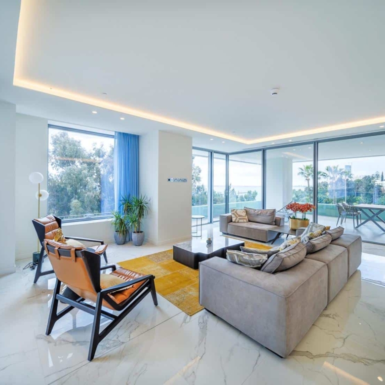 A luxury residential complex is located on the first coastline of Limassol, Cyprus’s important recreational and business location, Symbol offers its future residents designer apartments with views of the Mediterranean Sea and the picturesque coastline of one of the most dynamic resorts on the island. The Residence is comprised of 12 floors and 26 spacious apartment and Residents can enjoy numerous facilities including personal access to a private fitness center, as well as a SPA center, swimming pool, jacuzzi, a lounge zone, a large park and many more. The apartment, occupying an entire floor, provides stunning, uninterrupted sea views and a serene atmosphere with the gentle whisper of waves, a fresh sea breeze, and the essence of the nearby eucalyptus grove.