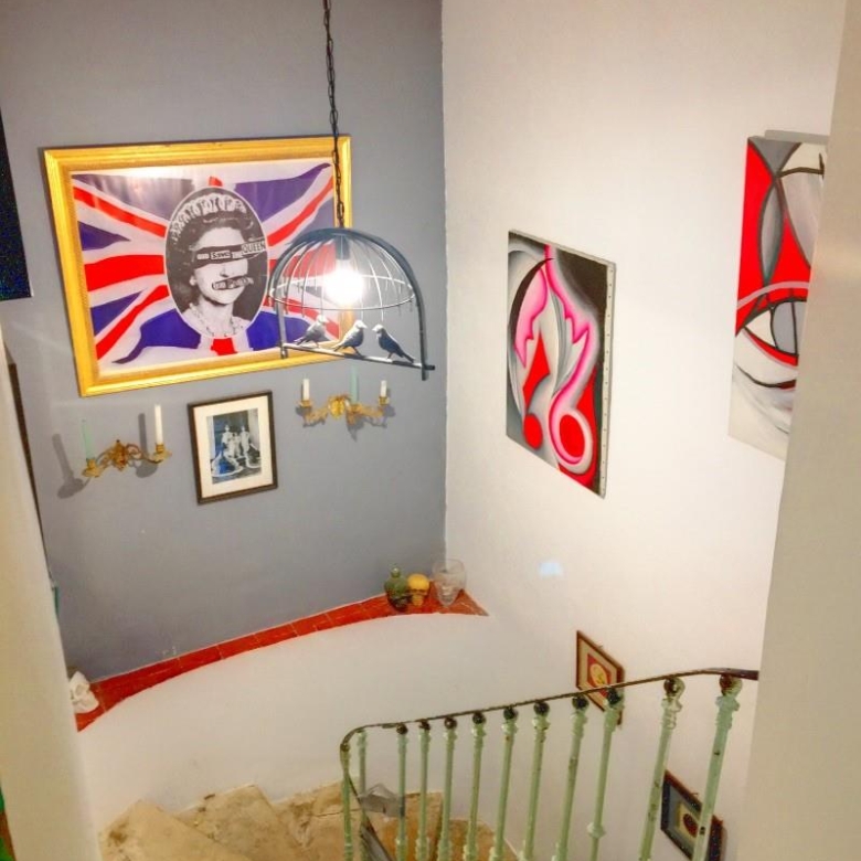 Ground floor: main entrance and access to the garage/workshop and cellar. Separate room that could be fitted out as a bedroom, office, gym, etc. A winding stone staircase leads to all floors.