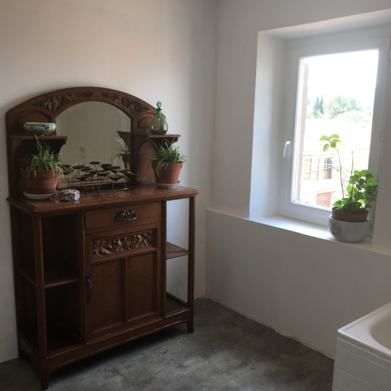 The home has a balcony to the South, and a fabulous terrace facing North (afternoon and evening sun) with lovely views over the village and surrounding mountains, castle and town hall. Sun all day!