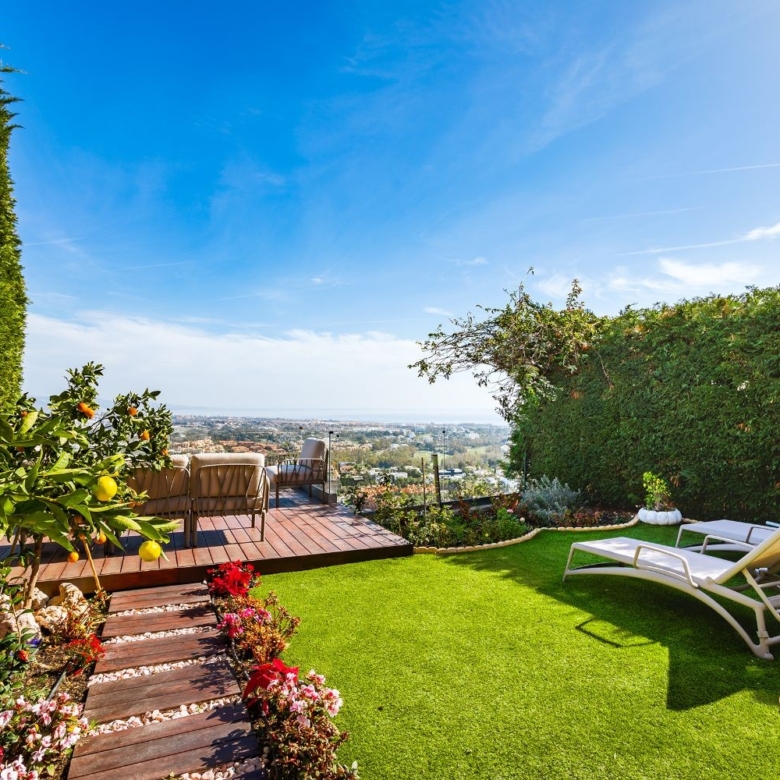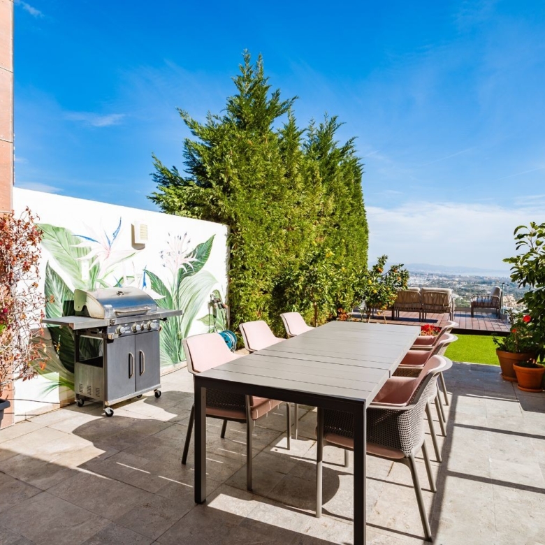 Modern semi-detached house in Benahavís, a small fully gated residential complex of only 8 homes situated 10 minutes’ drive to several golf courses, the beach and all amenities. Offering outstanding open views to the sea, the mountains and the surroundings, this house comprises 3 bedrooms, one of them en suite and the others sharing a bathroom; guest toilet; a spacious and bright living room with dining room, fully equipped kitchen, private garden, garage and multipurpose room. It is within a private gated complex with communal gardens and pool and CCTV.