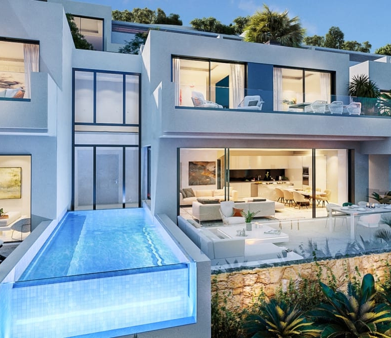 New Development: Prices from 1,400,000 € to 1,400,000 €. [Beds: 4 – 4] [Baths: 4 – 4] [Built size: 191.00 m2 – 191.00 m2] These luxury, two-storey villas are in Torremuelle, one of the most beautiful locations on the Costa del Sol. Each villa has incredible uniterrupted views of the coast, the Mediterranean Sea, and the mountains. This is an exclusive development of just twenty luxury villas. The elegant, contemporary design is perfect for today’s modern lifestyle. The villas present a sophisticated image, and the chic architectural lines create a bold and impressive exterior. Yet it’s a refreshing style designed to enhance the space within each villa. There are expansive walls of floor to ceiling glass doors you can fully open to keep the villa cool and airy during the heat of a summer’s day. They make the villa bright and welcoming by allowing maximum daylight to enter. The staircase is discreetly positioned to avoid it dominating the room and features a stylish, double height window panel or skylight to ensure it’s brightly illuminated by the sun. There is also elegant, porcelain flooring flowing seamlessly throughout the rooms. The large, open-plan living room is perfect for a busy family life. This spacious room can easily accommodate a large dining table and more than one comfortable sofa, whilst maintaining a cosy atmosphere at the same time. A stylish fire pit at one end of the room adds warmth to a chilly evening. The open-plan design includes an elegant and practical kitchen perfect for everyday life, or when you want to entertain your friends. The kitchen includes a compact island unit or breakfast bar, and the cupboards behind it are unobtrusive and neatly designed to blend in with the rest of the living room. There are four spacious bedrooms, all en-suite and all with excellent views. Experience Exceptional Service Only With Us When Purchasing Your Marbella Home. We offer our clients an unrivaled service, from first contact to moving into your new home in the sun, we will be with you on your journey all the way. Our aim is to exceed all expectations delivering excellent service, up to date real time property listings, and a customer experience that is unrivaled in the real estate industry. We have access to the best lawyers, most competitive mortgage solutions and the best money exchange rates available. Put your trust in us to deliver an informative, caring, no hidden cost solution that will help to make your purchase in the sun stress free, easy and enjoyable. House for sale in Benalmadena Property ID: AVH-R3850900 Price: €1,400,000 Property Size: 191 m2 Bedrooms: 4 Bathrooms: 4 Property Type: Villa Property Status: For Sale