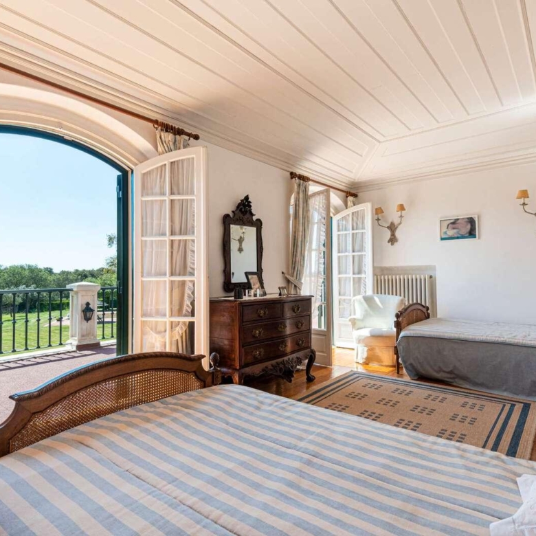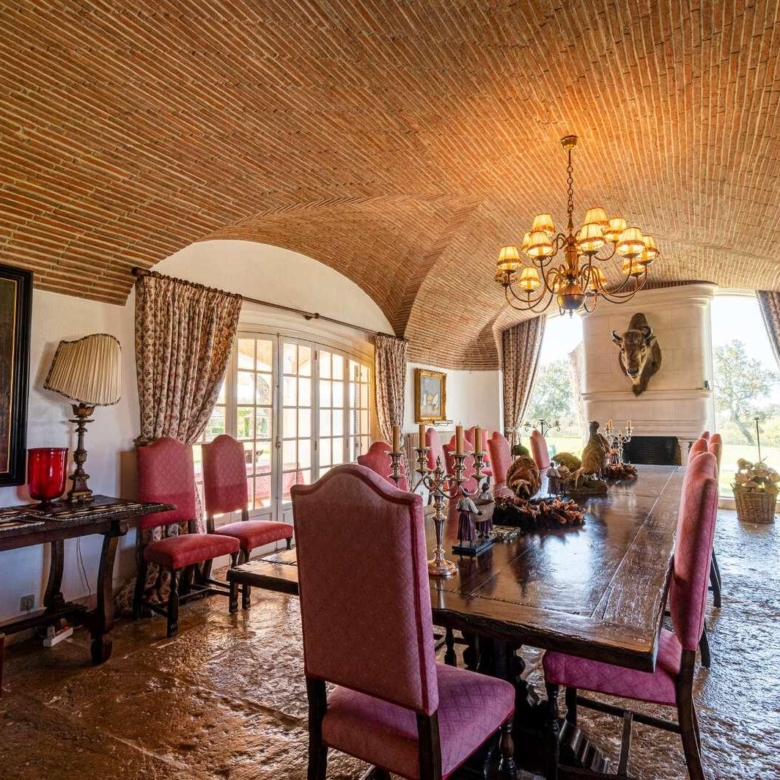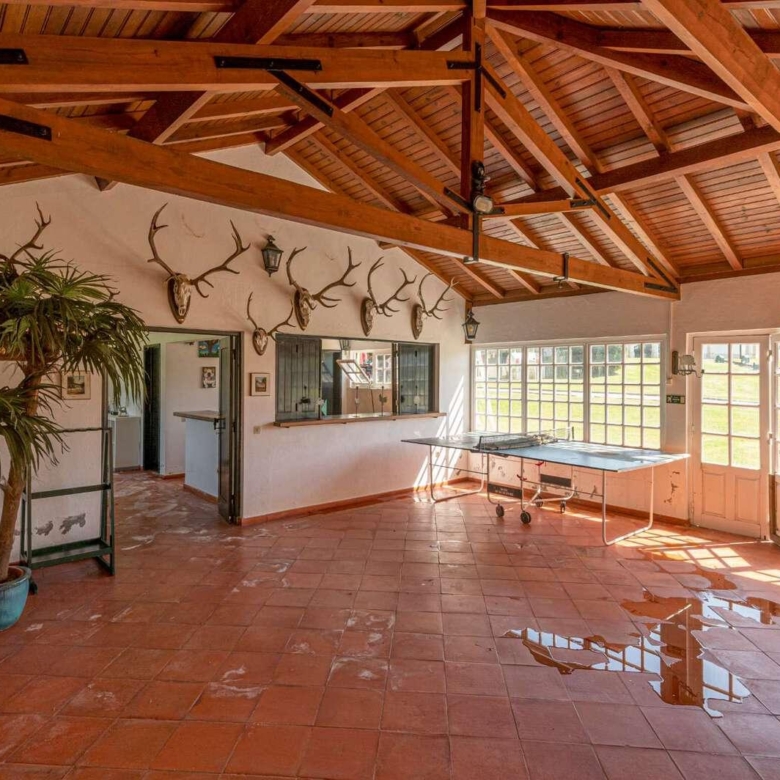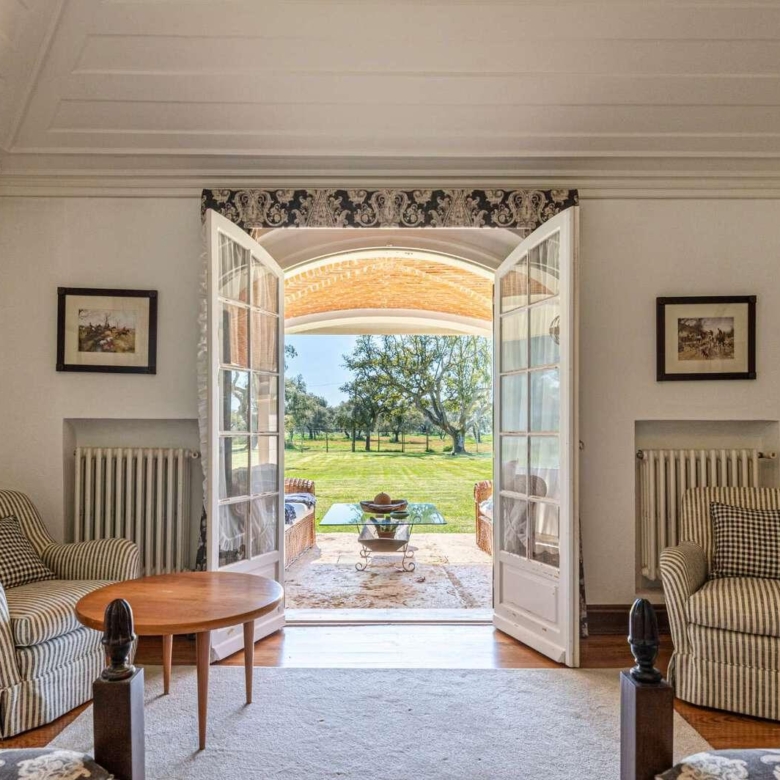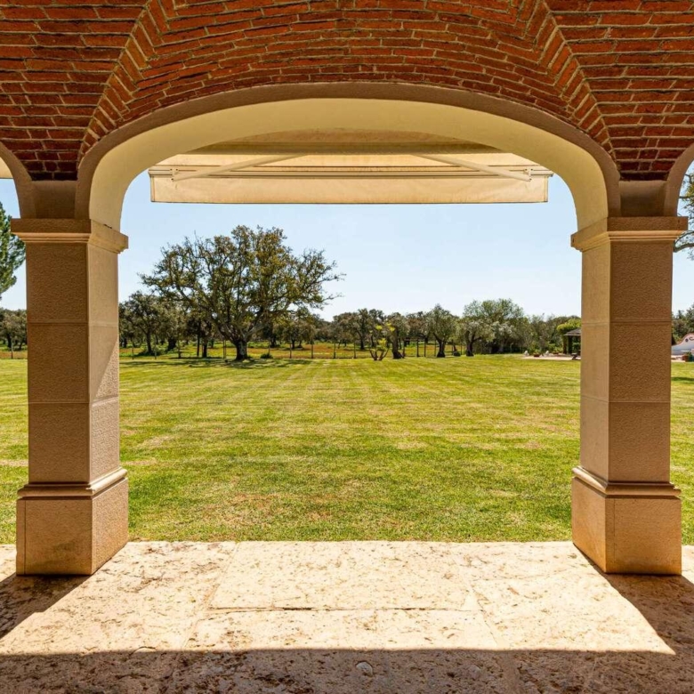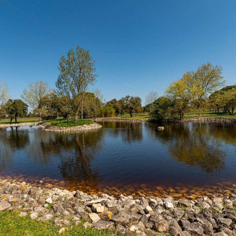 Magnificent estate in the heart of Ribatejo, designed by the architect Antonio Jose Brito e Cunha, located just 40 minutes from Lisbon, as well as a few minutes from Santo Estevao Golfe and the town of the same name. The estate has vast riding areas nearby and is surrounded by spectacular scenery. This stunning 32-hectare luxury property has been thought out in detail and has unique architectural and decorative elements, where the decoration of the renowned interior decorator Maria Jose Salavisa stands out. With a gross building area of over 1700 sq.m. the estate comprises a main house, guest house, garages, carpentry, swimming pool, large lawn (where a helicopter can land), tennis court and official ‘skeet’ shooting range with a support pavilion, with lounge, bar, sanitary facilities and dining area. The main house consists of six en-suite bedrooms, two living rooms with a fireplace, a dining room with a fireplace, a fully equipped kitchen, rooms for utility (two bedrooms), laundry and a pantry. Also noteworthy are the vaulted ceilings in rustic brick, built according to the old Portuguese art, which allows maintaining the thermal insulation, as well as the central heating system, the six fireplaces and the radiant floor, the hand-painted tiles of Fabrica de Sant ‘Anna, with different motives, from a tropical landscape to a high school equestrian movement and other finishes and used materials, such as the ground floor stone in old marble slabs of an 18th-century monastery and the thick solid oak doors throughout the house. It is, without a doubt, the perfect refuge for all those who seek privacy, exclusivity, tradition and contact with nature. Property ID: PDF-PF24904 Price: €3,850,000 Property Size: 1403.5 m2 Land Area: 321196.0 m2 Bedrooms: 9 Bathrooms: 8