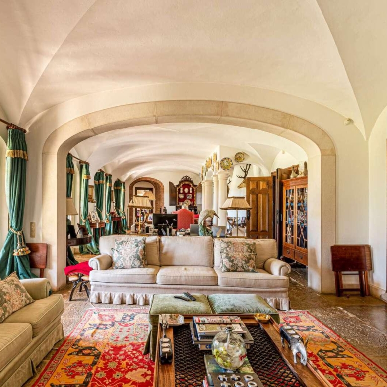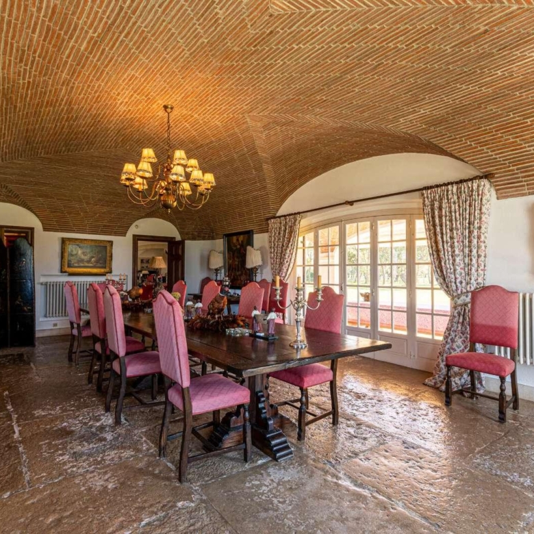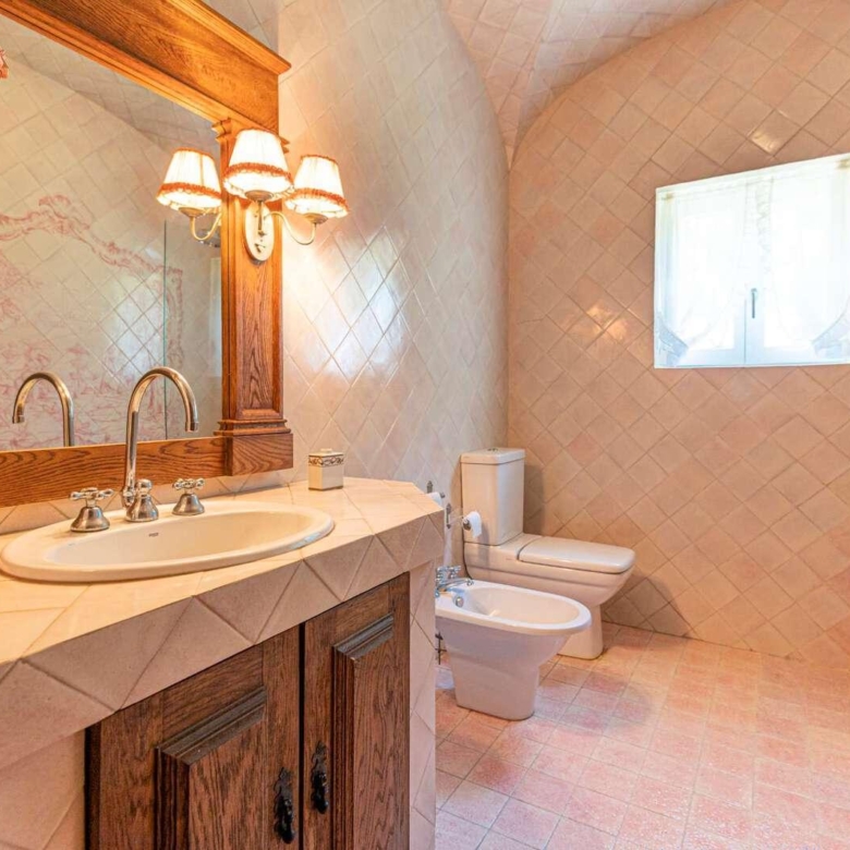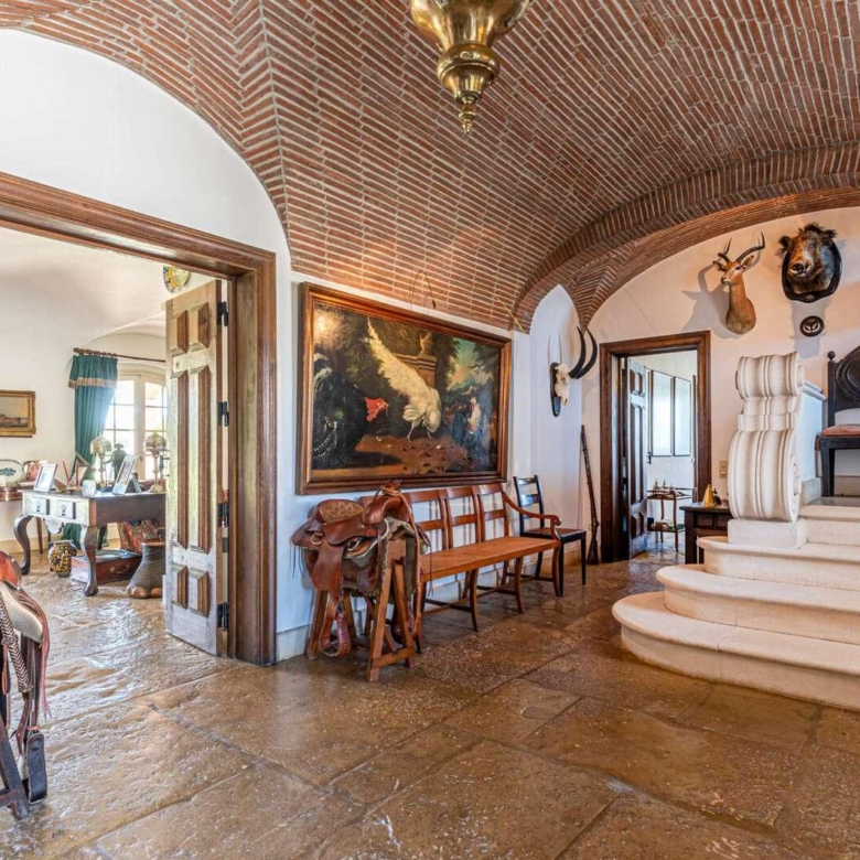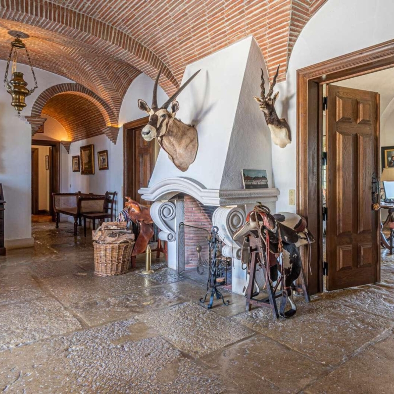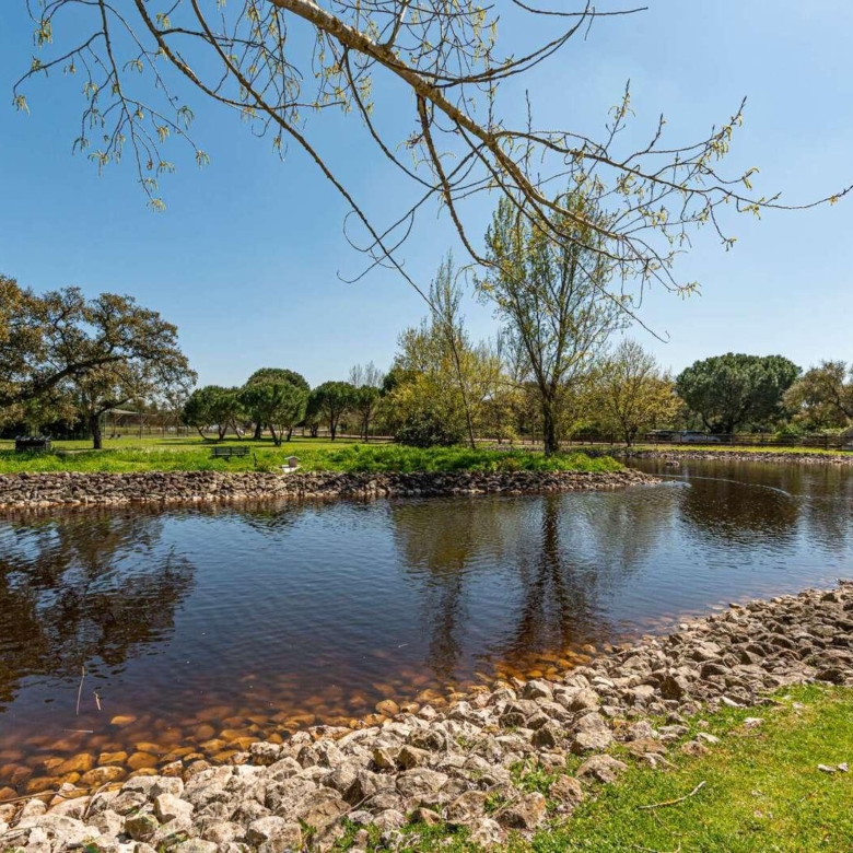 Magnificent estate in the heart of Ribatejo, designed by the architect Antonio Jose Brito e Cunha, located just 40 minutes from Lisbon, as well as a few minutes from Santo Estevao Golfe and the town of the same name. The estate has vast riding areas nearby and is surrounded by spectacular scenery. This stunning 32-hectare luxury property has been thought out in detail and has unique architectural and decorative elements, where the decoration of the renowned interior decorator Maria Jose Salavisa stands out. With a gross building area of over 1700 sq.m. the estate comprises a main house, guest house, garages, carpentry, swimming pool, large lawn (where a helicopter can land), tennis court and official ‘skeet’ shooting range with a support pavilion, with lounge, bar, sanitary facilities and dining area. The main house consists of six en-suite bedrooms, two living rooms with a fireplace, a dining room with a fireplace, a fully equipped kitchen, rooms for utility (two bedrooms), laundry and a pantry. Also noteworthy are the vaulted ceilings in rustic brick, built according to the old Portuguese art, which allows maintaining the thermal insulation, as well as the central heating system, the six fireplaces and the radiant floor, the hand-painted tiles of Fabrica de Sant ‘Anna, with different motives, from a tropical landscape to a high school equestrian movement and other finishes and used materials, such as the ground floor stone in old marble slabs of an 18th-century monastery and the thick solid oak doors throughout the house. It is, without a doubt, the perfect refuge for all those who seek privacy, exclusivity, tradition and contact with nature. Property ID: PDF-PF24904 Price: €3,850,000 Property Size: 1403.5 m2 Land Area: 321196.0 m2 Bedrooms: 9 Bathrooms: 8
