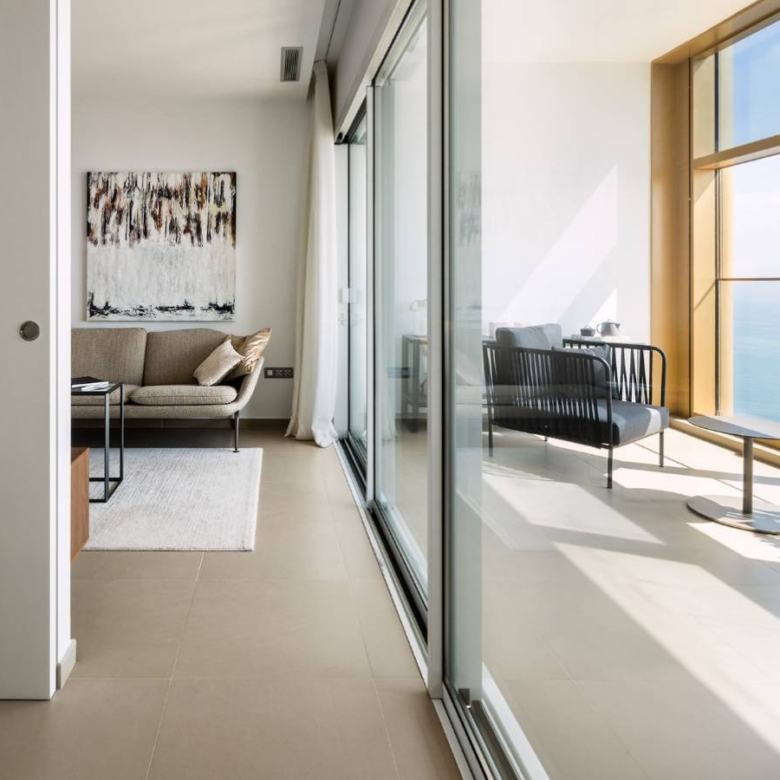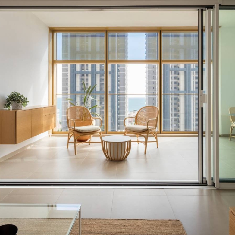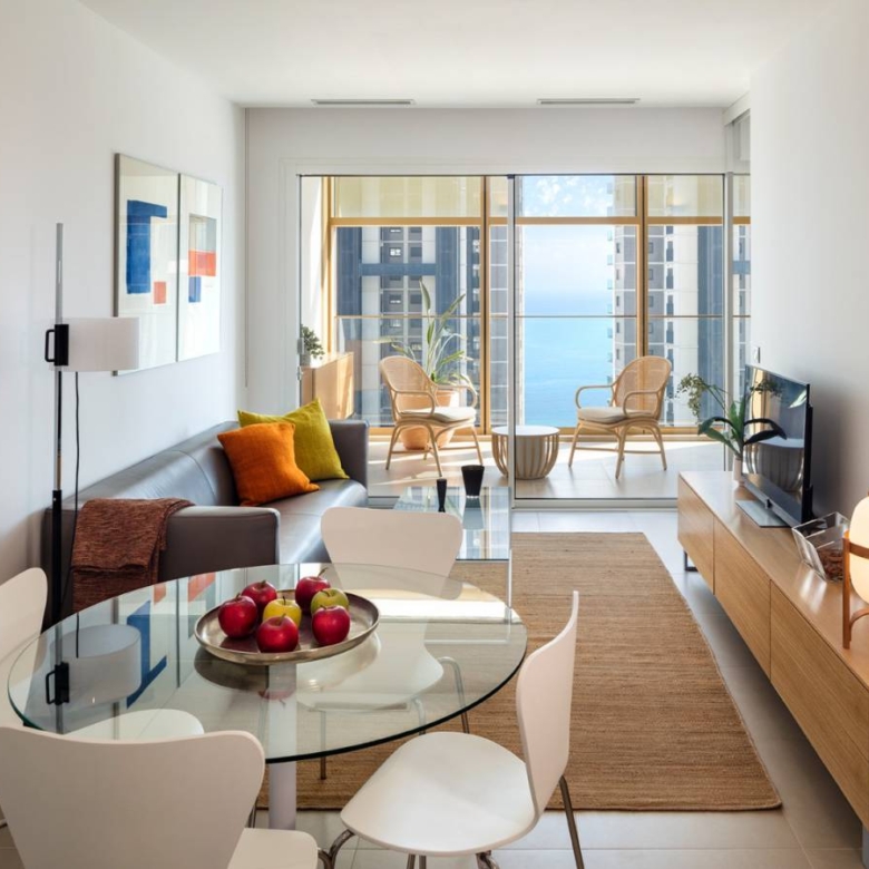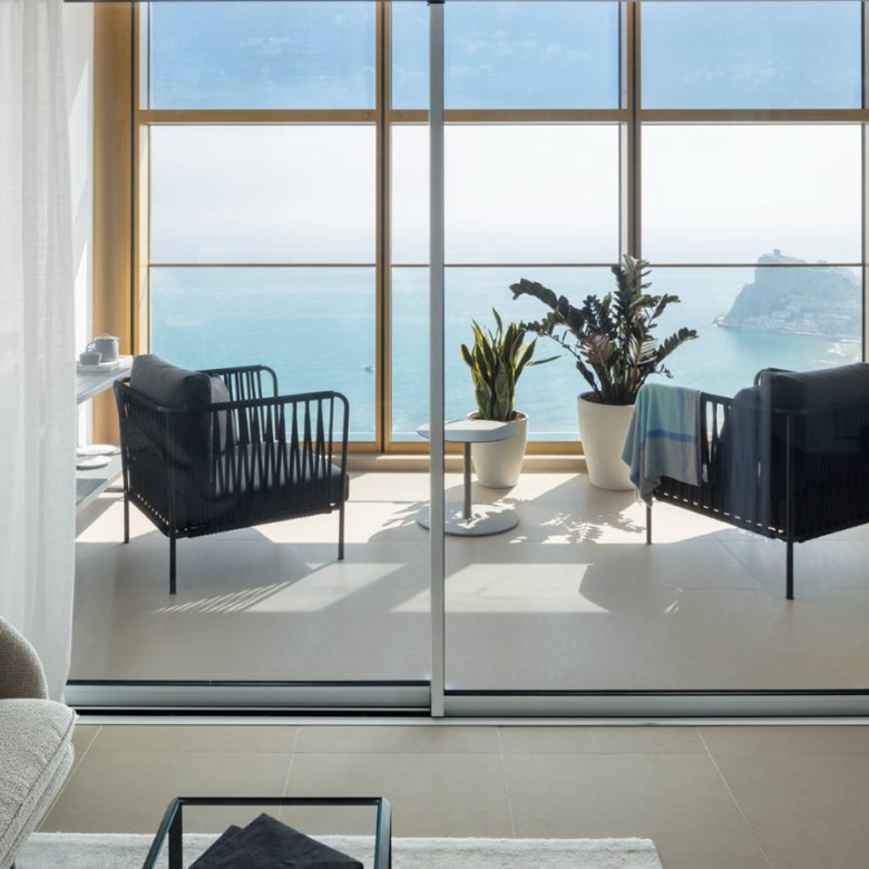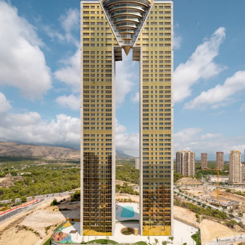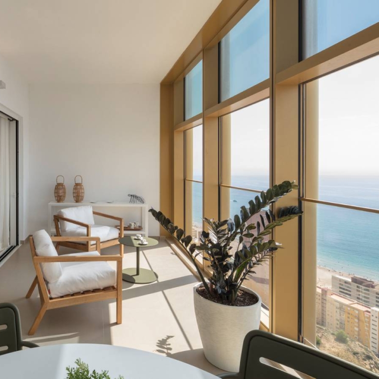 Apartments with panoramic views in Benidorm, Costa Blanca This imposing building is 198 meters high, divided into 47 floors with a total of 256 homes. Each of the apartments is unique. All the apartments have a large private terrace, with access from the bedroom and the living room, and totally isolated. In our apartments, the union of the kitchen, dining room and living room with the terrace allows us to optimize the space and create a comfortable, open-plan environment that is easy to maintain. The details of each of these homes have been designed to provide maximum comfort. This building is unique for its location next to the exclusive Poniente beach, for the uniqueness of its contemporary art deco architecture, for the quality and warmth of the materials used, for the original design of its interiors, for the views that can be enjoyed from all its apartments, due to the maximum privacy offered by the homes, due to the high level and quantity of community services to which all residents have access, due to the variety and originality of its common areas. Well protected by lacquered aluminum exterior carpentry with double glazing with a camera and a low solar factor, the apartments enjoy a pleasant temperature all year round. A temperature regulated by an individual air conditioner, with a low consumption heat pump. The rooms have large built-in wardrobes with white lacquered doors and lined interior. The kitchens are perfectly equipped with furniture in a white finish, a high-resistance white countertop, a stainless steel sink, an electric oven, a microwave, a dishwasher, a ceramic hood and hob, and a fridge, all from leading brands. The bathroom, which lacks nothing, includes a bathtub with hydromassage. The walls are painted white. The apartments are equipped with a modern electrical installation, and the floor is covered with a porcelain stoneware floor. Property ID: GH-307502 Price: €362,000 Property Size: 74 m2 Land Area: 106 m2 Bedrooms: 2 Bathrooms: 2 Property Type: Apartment Property Status: For Sale