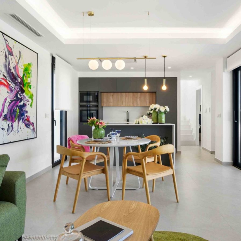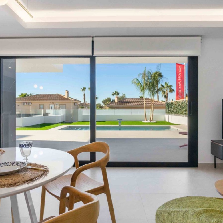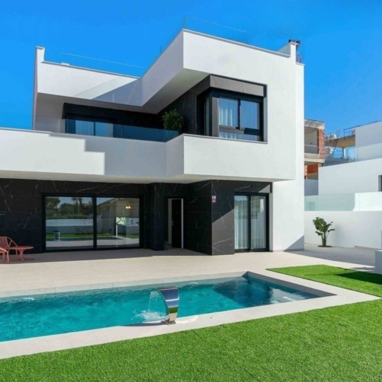 Villas for sale in Benimar, Rojales, Costa Blanca 9 modern 3-bedroom homes in Rojales. Each house has a private pool, optional solarium, elegant design and excellent location. Each home offers a living area of 135.23m2, with a 37.80m2 solarium, providing ample outdoor space to enjoy the Mediterranean climate. The properties have 7×3 meter private pools and are situated on plots ranging from 285 to 364 square meters. An exclusive development of two-storey homes in Benimar, Rojales, located in the quiet and charming southern area of Alicante. These luxurious properties are located close to the unspoilt beaches of the Costa Blanca and prestigious golf courses, making them the perfect choice for those looking to enjoy life’s pleasures in an exceptional setting. These contemporary design homes prioritize comfort and elegance, with underfloor heating in the bathrooms and top quality finishes throughout the building. The design and features are adapted to a modern and functional life, guaranteeing a high level of residence in a calm and safe environment. In the vicinity of this project, you will find a wide range of services and amenities, including shops, restaurants, supermarkets and medical centers, ensuring that all your needs are close at hand. In addition, Benimar, Rojales has excellent transport links and access to the main road networks, making local and national travel convenient. Property ID: GH-307570 Price: €497,500 Property Size: 135 m2 Land Area: 285 m2 Bedrooms: 3 Bathrooms: 3 Property Type: Villa Property Status: For Sale