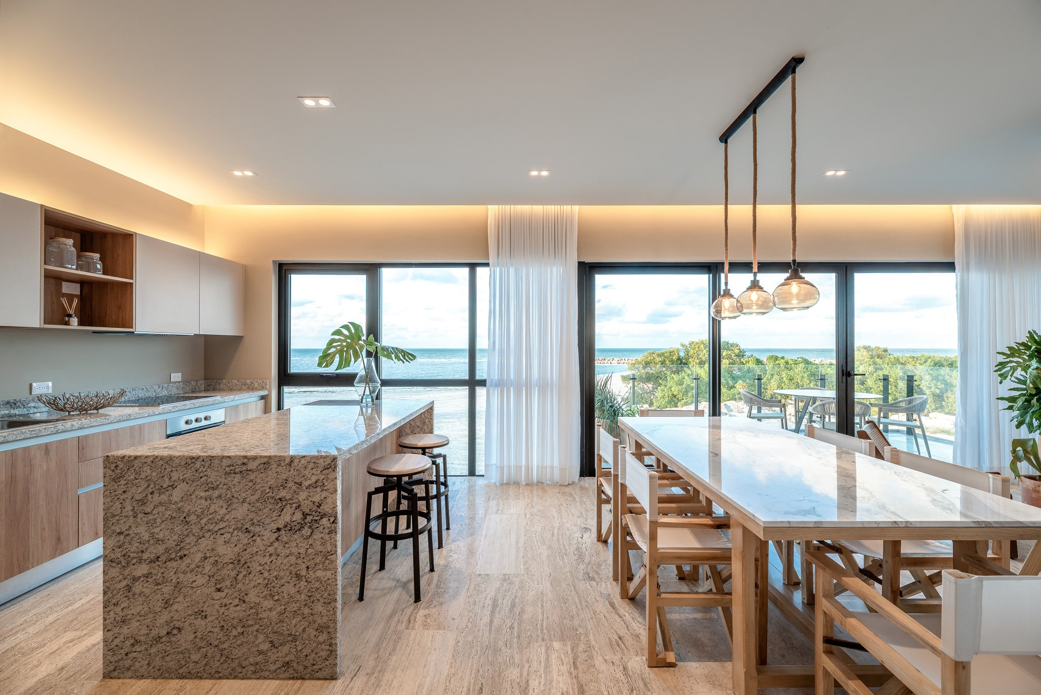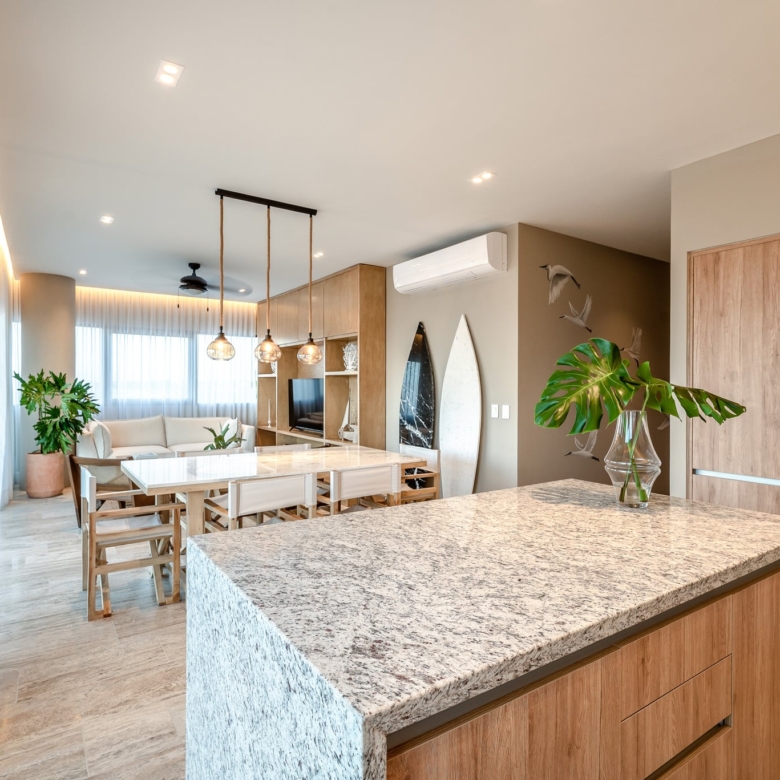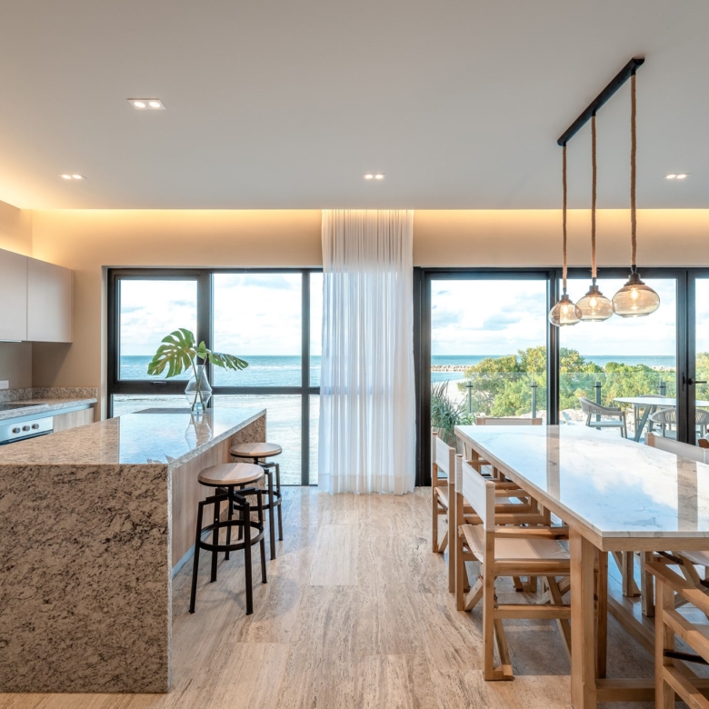 Designed for comfort and elegance, the penthouse features an open-concept living and dining area, high-end finishes, and expansive floor-to-ceiling windows that maximize natural light. The private sundeck and terrace create the perfect setting for relaxation while overlooking the stunning Yucatan coastline.